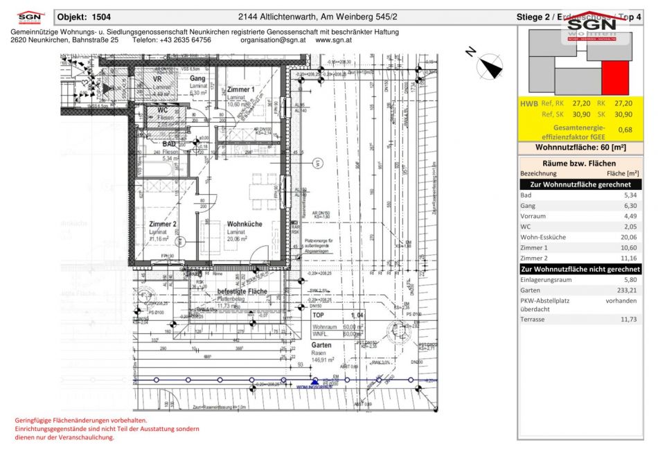 Diese 3-Zimmer Wohnung im Neubauprojekt in Altlichtenwarth bietet Ihnen ein modernes und komfortables Zuhause mit großzügigen Wohnräumen, einer wunderschönen Terrasse, eigenem Garten und praktischen Abstellmöglichkeiten. Kontaktieren Sie uns gerne für weitere Informationen oder um einen Besichtigungstermin zu vereinbaren. Wir freuen uns darauf, Ihnen dieses attraktive Wohnangebot näher zu bringen!