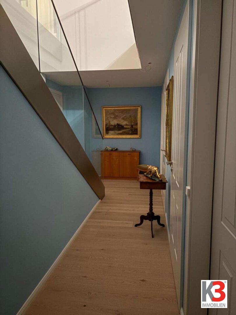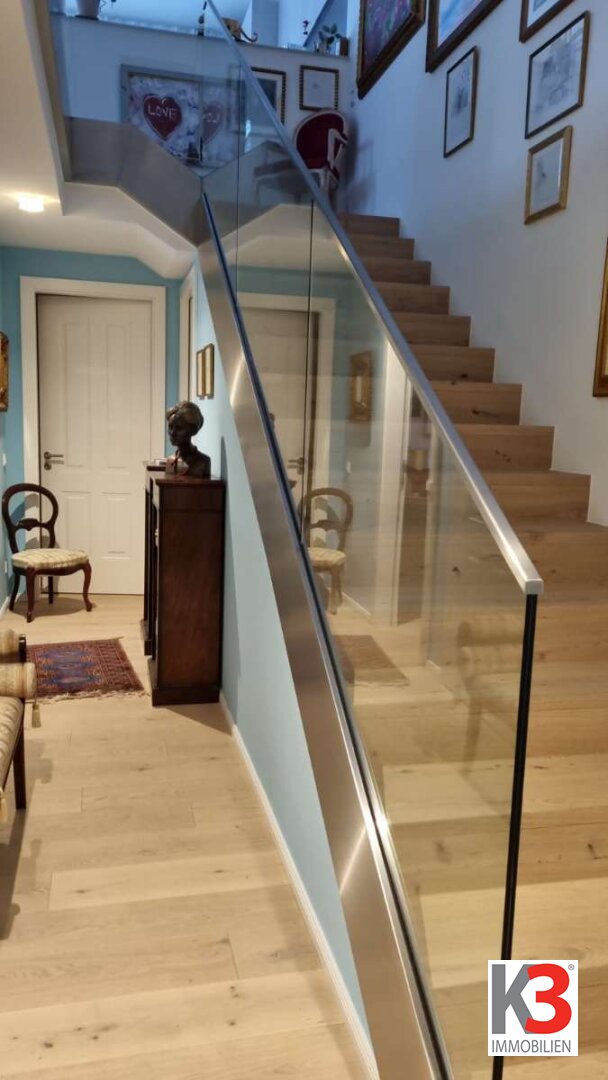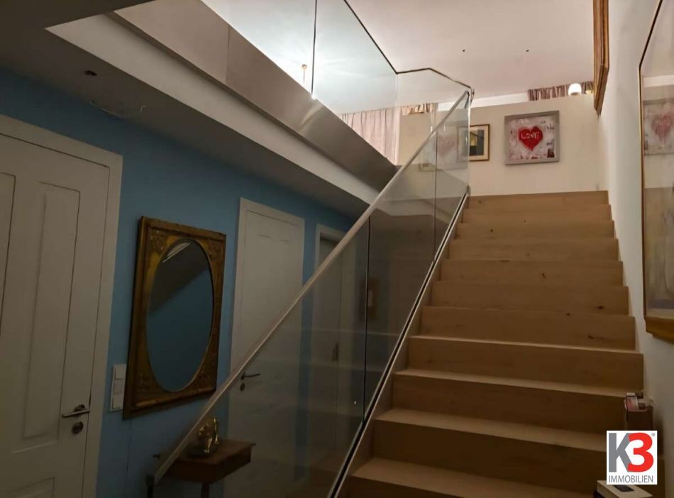 Im Erdgeschoss befindet sich das offen gestaltete Wohnzimmer mit Essbereich mit direktem Zugang zur Terrasse und dem eigenen Garten, separate Küche. Ergänzt wird diese Ebene durch Garderobe, Gäste-WC und einen praktischen Abstellbereich.