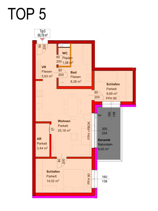 Vorraum - Abstellraum - Wohnküche - Bad mit WC – Schlafzimmer – Terrasse
