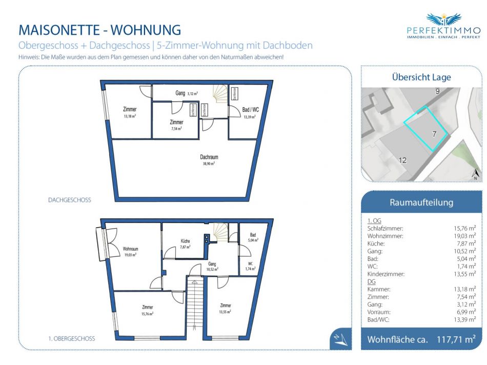 Wohnnutzfläche: ca. 117,71 m² zzgl. Dachbodenfläche