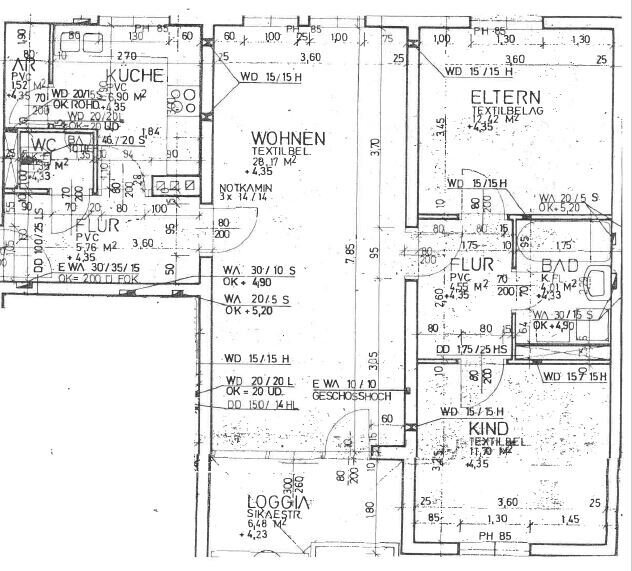 -Vorraum - WC - Küche - Abstellraum / Speis - Wohn- Ess - Zimmer mit Zugang auf die Loggia - Flur - Badezimmer - Schlafzimmer - Kinderzimmer