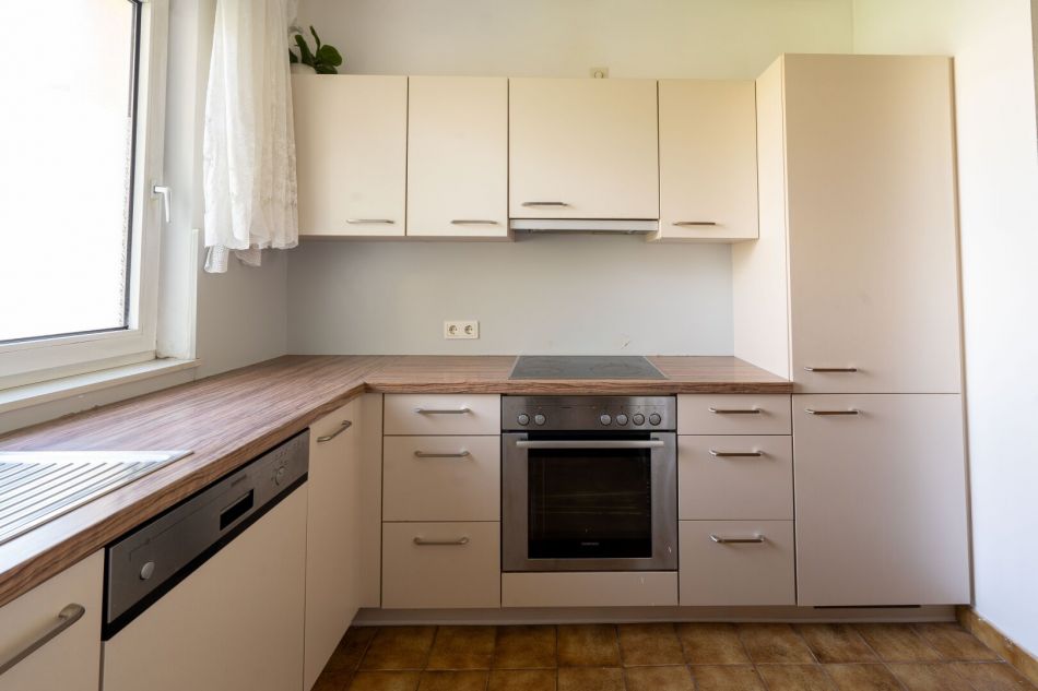 Das große, lichtdurchflutete Wohnzimmer verfügt über eine elegante Glasfront und bietet direkten Zugang zur gemütlichen Loggia mit Blick in den ruhigen Innenhof – perfekt zum Entspannen. Die Küche ist vollständig möbliert und praktisch geschnitten. Zusätzlich sind ein Kellerabteil sowie ein Tiefgaragenplatz vorhanden – letzterer ist bereits im Kaufpreis inkludiert.