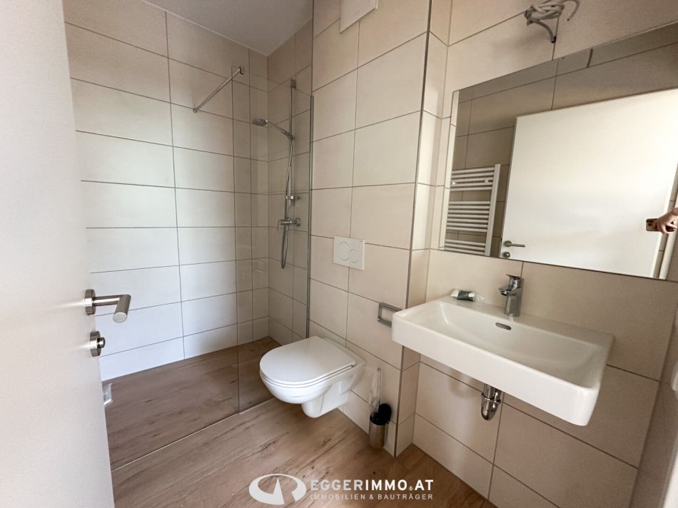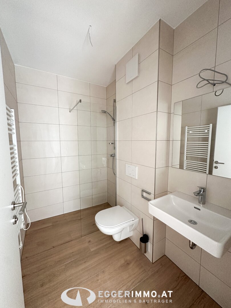 Badezimmer mit Dusche (lt. Plan) und Waschtisch mit modernen Armaturen