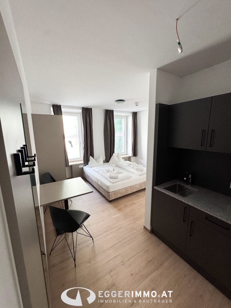 In einem umfassend kernsanierten Wohnhaus – ehemals eine Pension – entsteht ein durchdachtes Wohnkonzept mit 34 kompakten Einheiten. Ideal als erste eigene Wohnung oder für Mitarbeiter:innen.