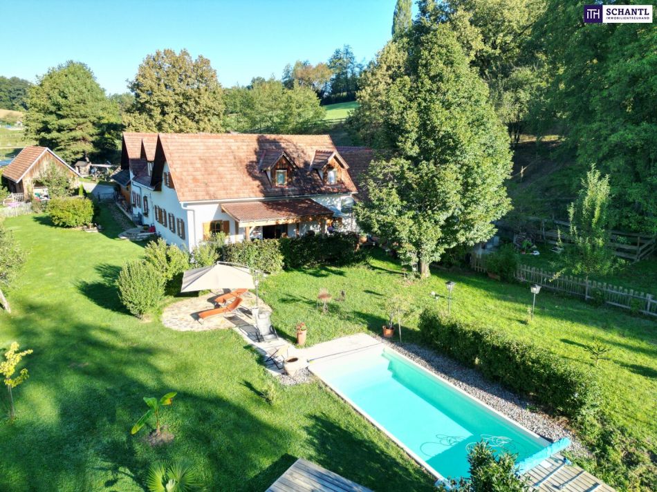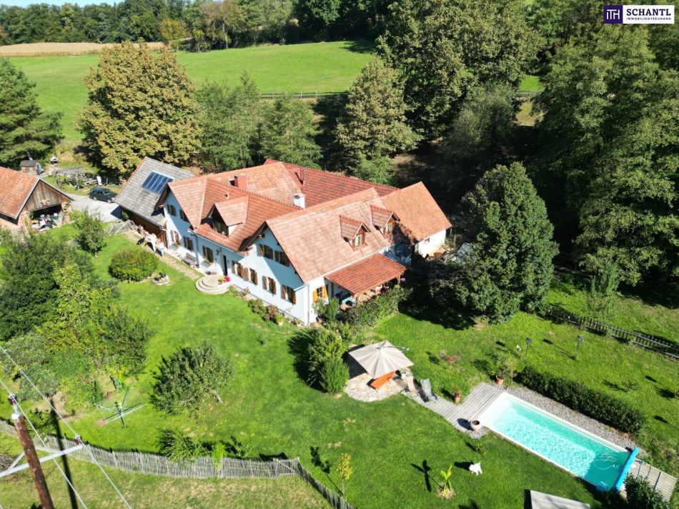 SENSATIONELLES JUWEL! Exklusiver Vierkanthof im Thermenland Steiermark – Wohnen, Reiten & Leben mit Pool und Natur!