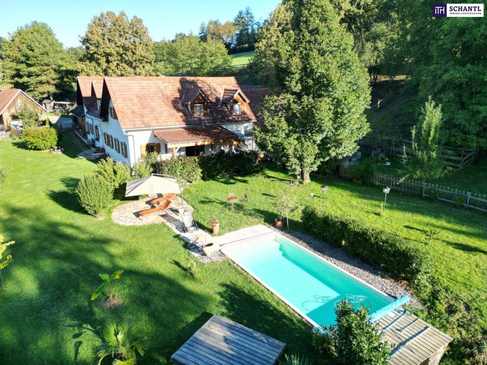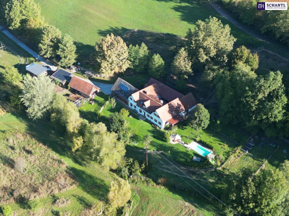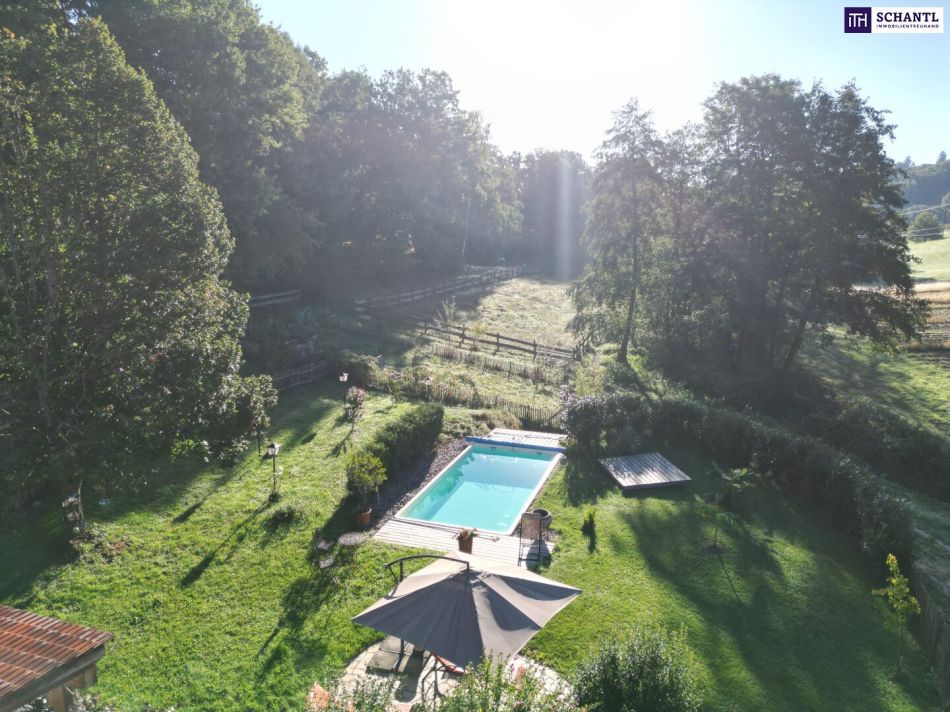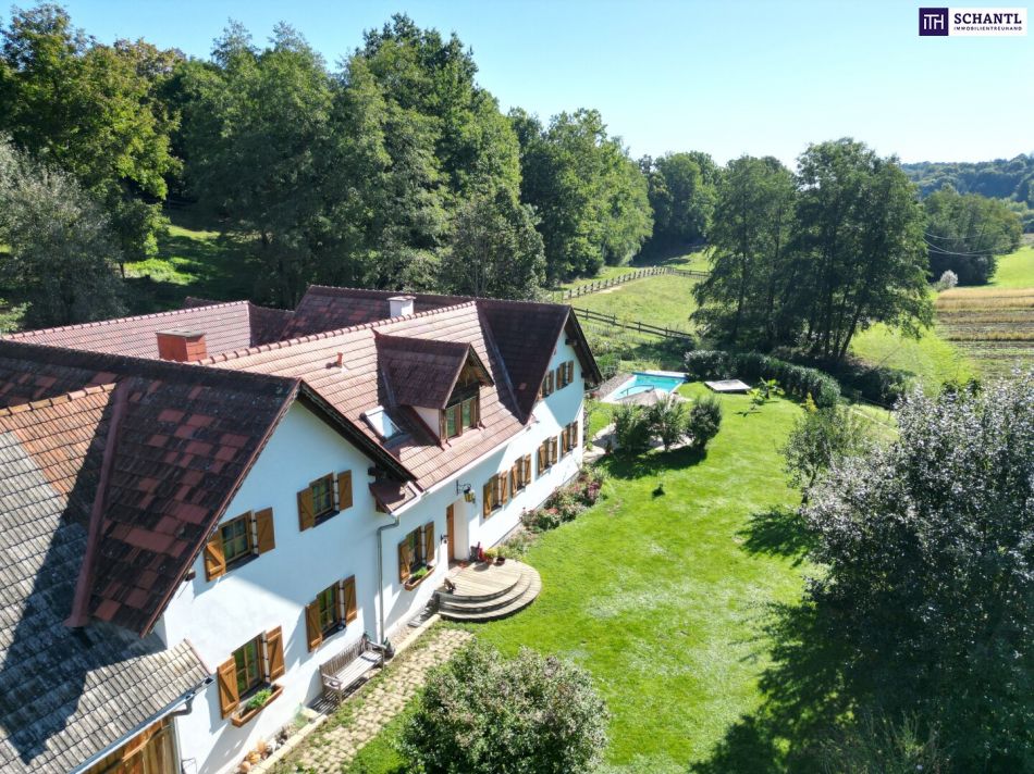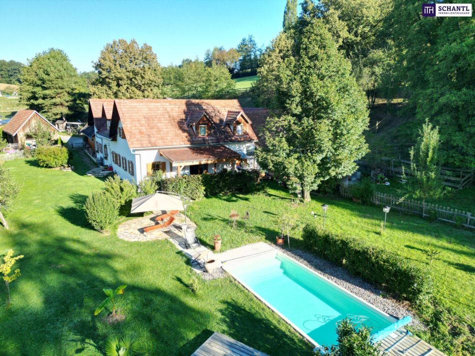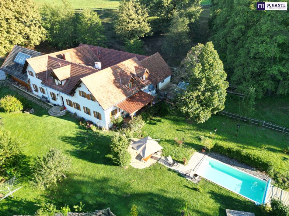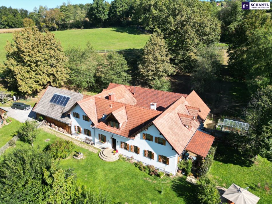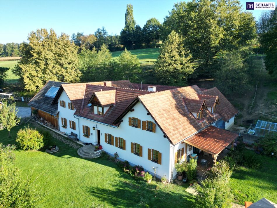 NEUER PREIS! AUSSERGEWÖHNLICHES JUWEL! Exklusiver Vierkanthof im Thermenland Steiermark – Wohnen, Reiten & Leben mit Pool und Natur!