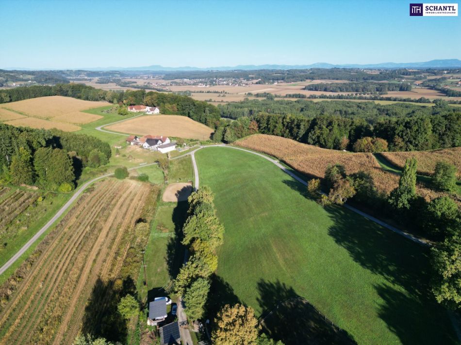 Der Vierkanthof thront in ruhiger, sonniger Lage mit weitem Blick über die sanfte Hügellandschaft der Südoststeiermark. Die bekannte Therme Loipersdorf sowie der Golfplatz sind in wenigen Minuten erreichbar. Gleichzeitig bietet die Nähe zu Fürstenfeld (10 km) und die gute Anbindung nach Graz (ca. 45 Min.) eine perfekte Balance zwischen Natur und Infrastruktur.