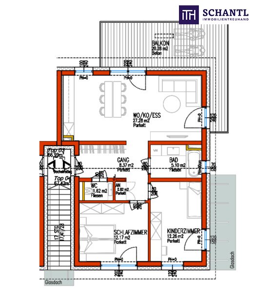 Das Highlight dieser lichtdurchfluteten Traum-Wohnung stellt neben den Raumhohen Decken (bis zu 4,5 m) im OG, ganz klar der großzügige 20 m² große Balkon dar, auf welchem Sie gemütlich ein Gläschen Wein genießen und vom Alltag abschalten können. Weiters besticht diese traumhafte 3-Zimmer Wohnung durch die offene Wohnraumgestaltung in Richtung Süd-Ost und die geniale Grundrissgestaltung - alle Zimmer sind mit großzügigen Fensterflächen ausgestattet.