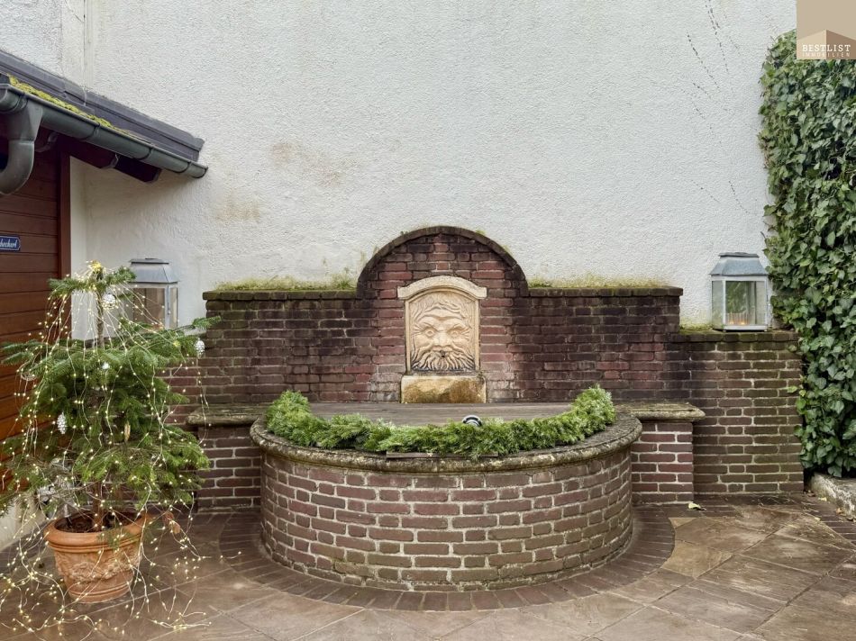 Ein weiterer Blickfang ist der Brunnen, der dem Garten eine besondere Atmosphäre verleiht und den Charme dieser Liegenschaft unterstreicht. Ergänzt wird das Gartenangebot durch ein Sommerhaus – ein idealer Rückzugsort für Entspannung und Erholung im eigenen Zuhause.