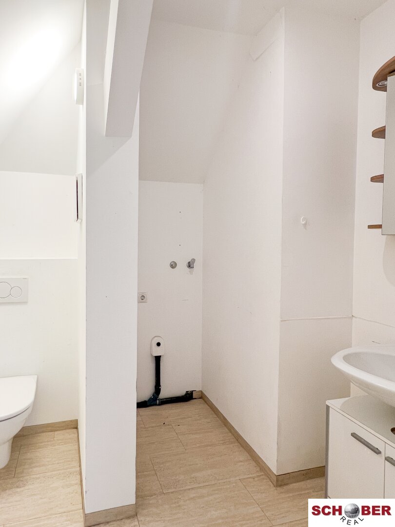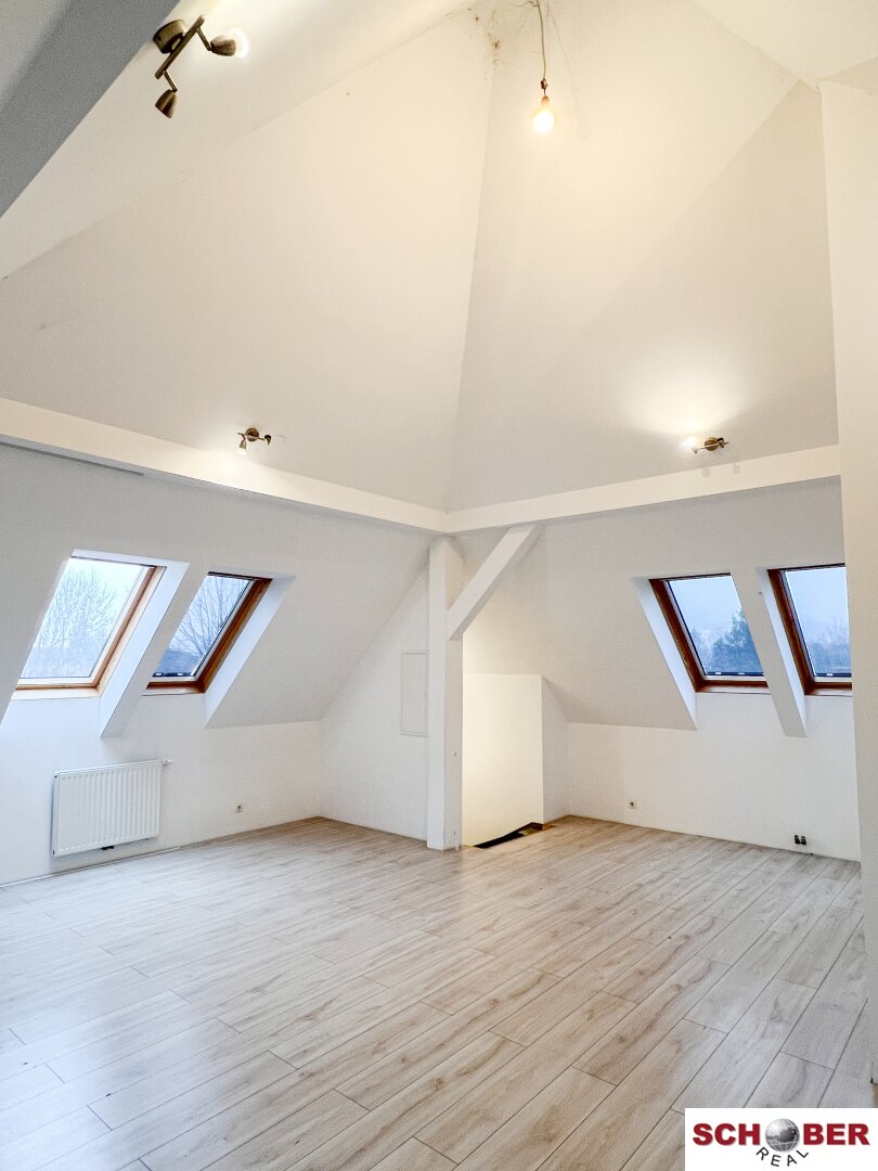 Der nachträglich ausgebaute Dachboden begeistert mit einem lichtdurchfluteten, offenen Raum. Anschlüsse für eine Teeküche sind vorhanden, ebenso ein WC.