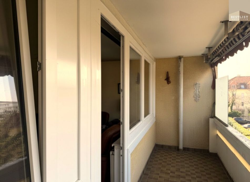 Eine Wohnung mit sehr guter Raumaufteilung, viel Licht und einer besonders schönen Loggia, mit Ausblick auf die Weinberger.