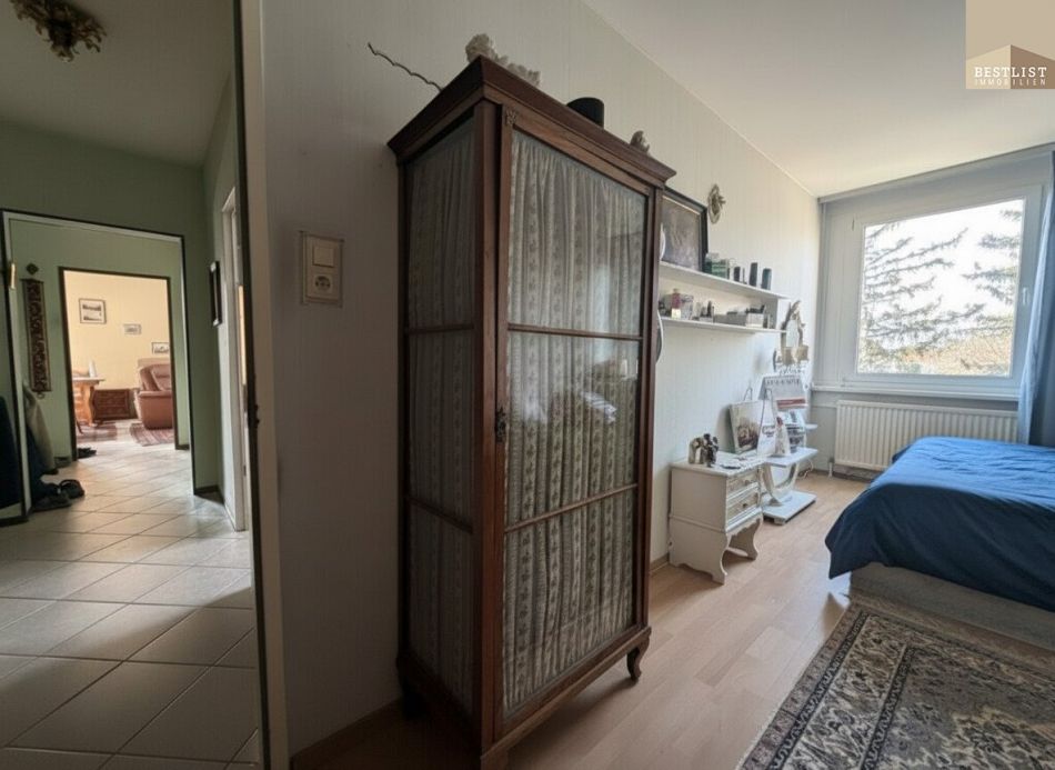 Diese 3-Zimmer-Wohnung gelangt erstmals seit Errichtung des Hauses (1981) zum Verkauf und wurde bisher von der ursprünglichen Eigentümerin bewohnt. Die Wohnung befindet sich im 2. Obergeschoss (mit Lift) eines soliden Wohnhauses und eignet sich ideal für Paare oder eine kleine Familie – mit gut getrennten Schlafzimmern, Elternbereich samt Schrankraum.Ein besonderes Highlight ist die Westloggia (9,60 m²) mit traumhafter Aussicht und Abendsonne. Das Wohnzimmer mit 25,59 m² wird zusätzlich durch ein südseitiges Fenster mit Tageslicht im Bereich des Essplatzes durchflutet.
