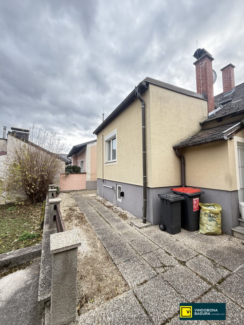 Der 1925 errichtete Bungalow, befindet sich in einer ruhig gelegenen Wohngegend nahe des Ortszentrums von Berndorf.Beim Betreten des Grundstückes erschließt sich die Einfahrt und der Eingang zum Haus.