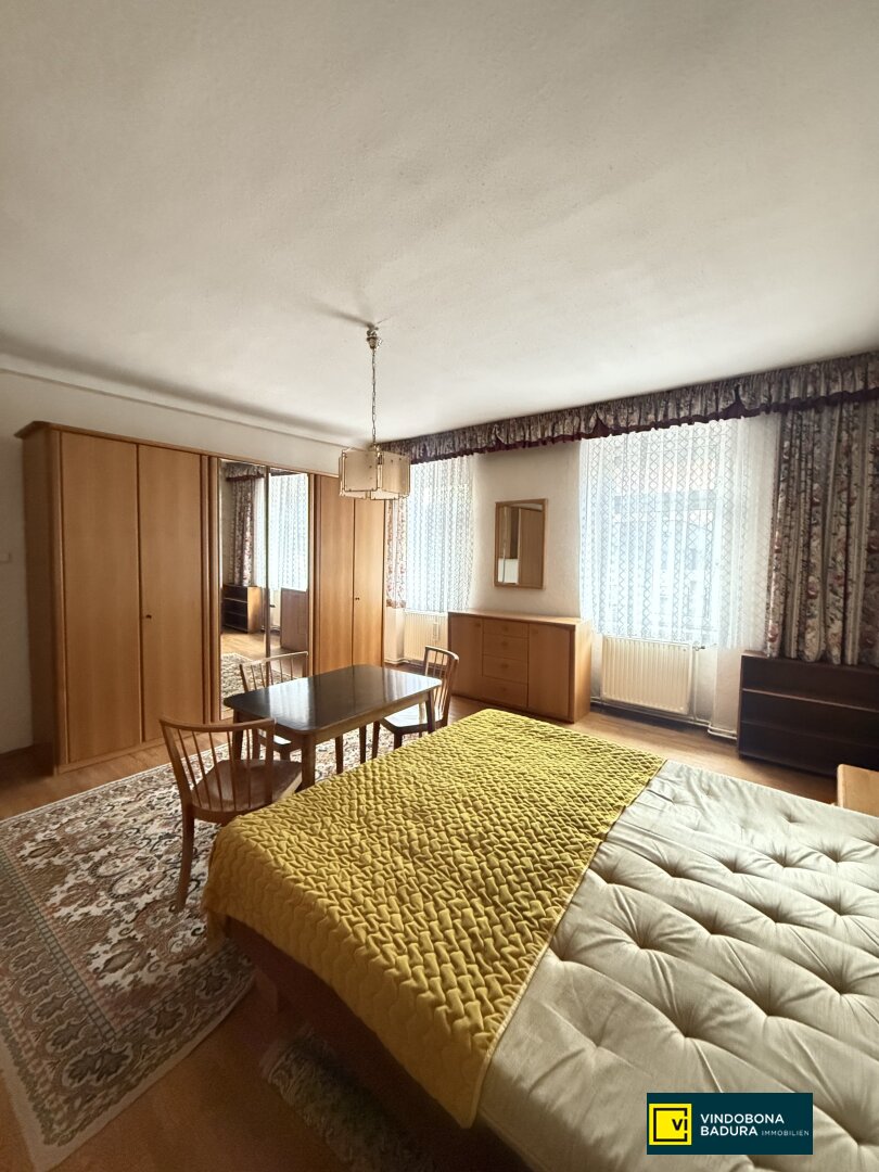 Auf der linken Seite des Wohn und Essbereiches erschließt sich ein Zimmer, welches beispielsweise als Büro genutzt werden kann und über welches man in das geräumige Schlafzimmer gelangt.