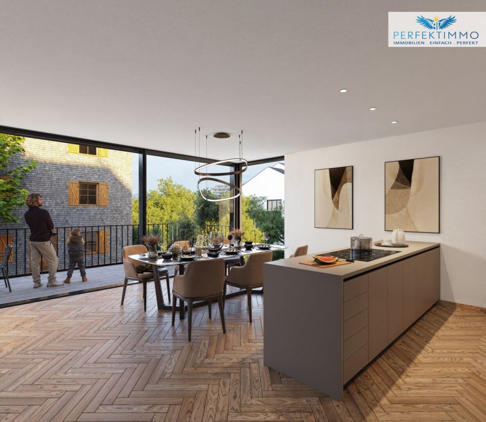 - Zwei Terrassen im 1. OG und eine wundervolle Dachterrasse: genießen Sie frische Luft und Ausblick. Die Terrassen sind optimal ausgerichtet und erweitern den Wohnraum ins Freie.