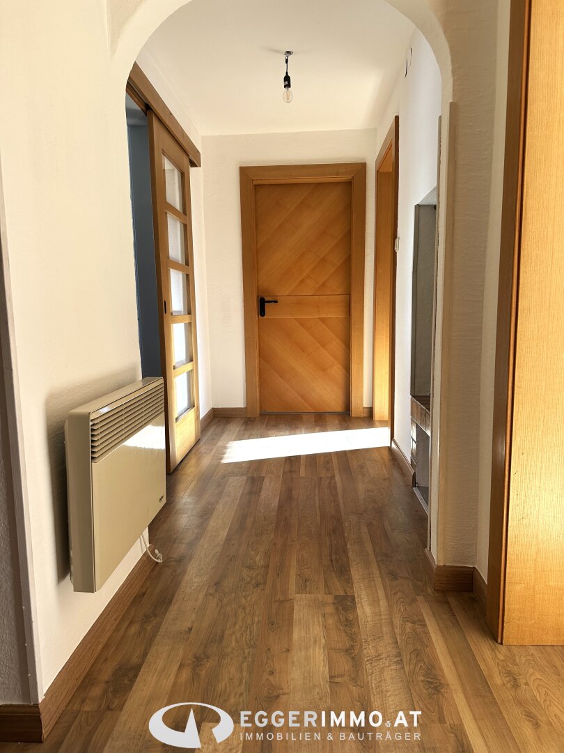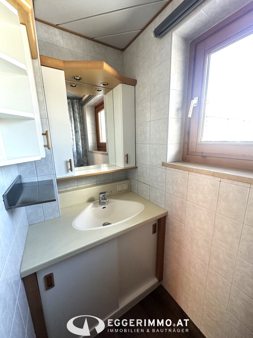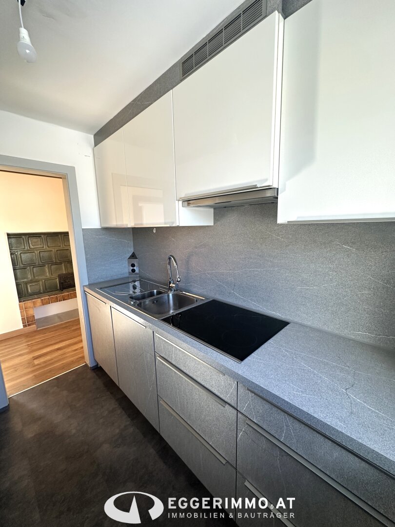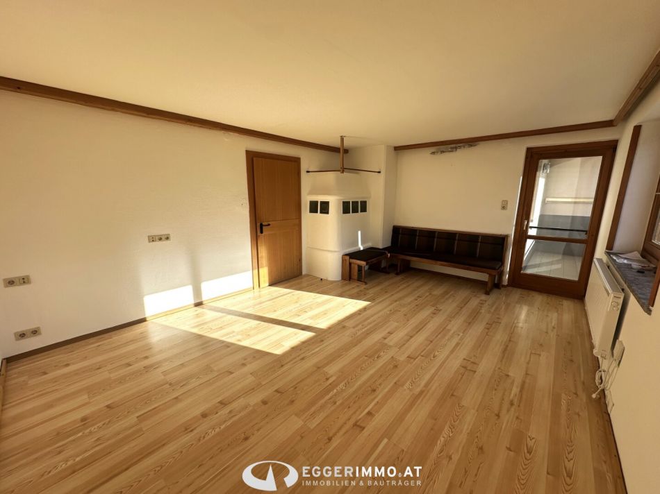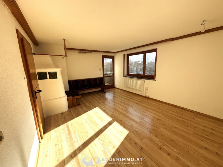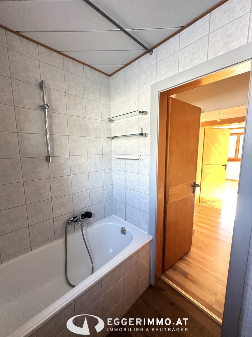Vorraum, WC (separat), Bad mit Badewanne und Fenster, Schlafzimmer, Kinderzimmer oder Büro, separate kleine neuwertige Küche, gemütlicher Wohn-Essbereich mit Kachelofen und Ausgang auf den sonnigen Balkon.