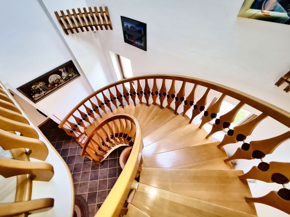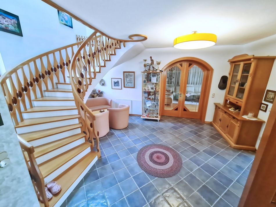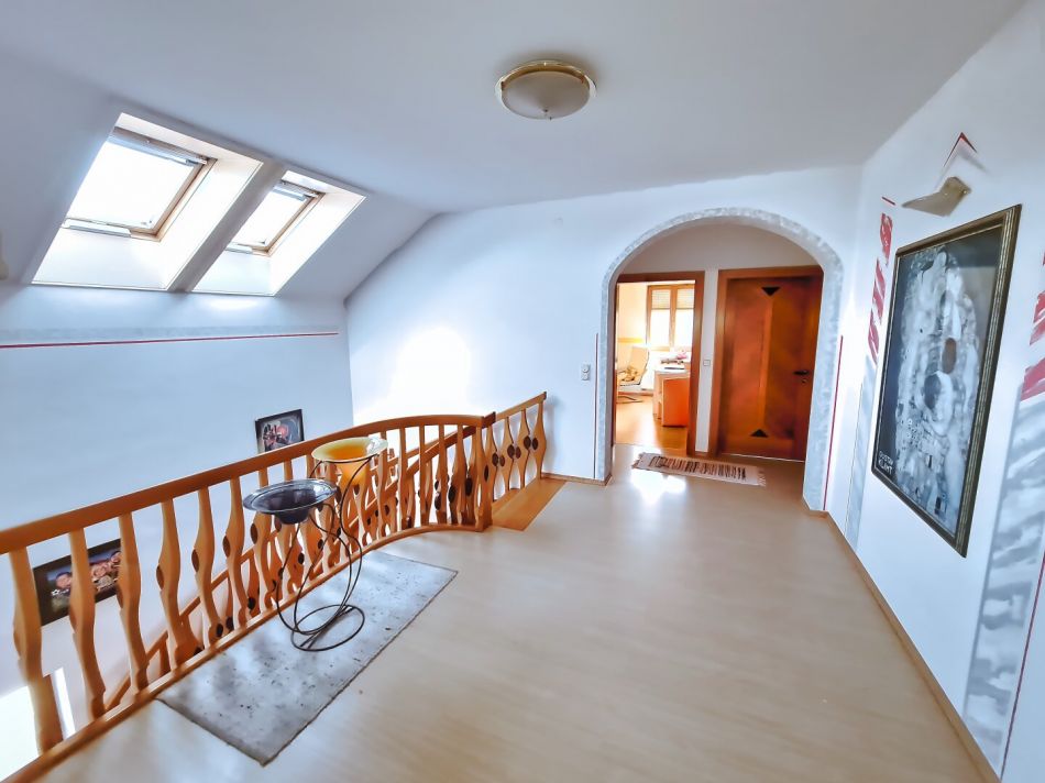 Das charmante Anwesen besticht durch einen offenen Stiegenaufgang, der die verschiedenen Räume elegant miteinander verbindet. Das gesamte Gebäude ist voll unterkellert, wobei ein Teil des Kellers als Wellnessbereich mit Sauna und Dusche ausgebaut wurde. Hier können Sie entspannen und nach einem langen Tag zur Ruhe kommen. Heuer wurde das Untergeschoß neu ausgemalen und neue Türen eingebaut.Â