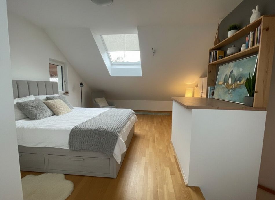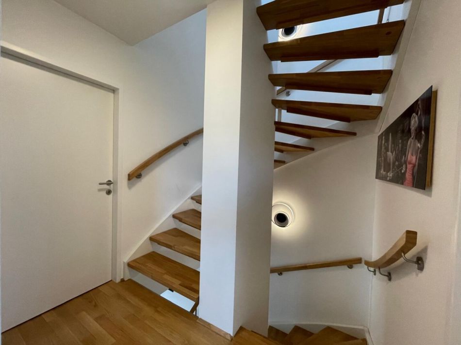 Schon beim Betreten dieses Eckreihenhauses wird eine unglaubliche Atmosphäre übermittelt. Das Reihenhaus mit ca. 136,33 m² Nutzfläche (§7 WEG) bietet ebenfalls einen großen Garten samt Terrasse. Im Erdgeschoss wird Sie das offene Raumkonzept mit ca. 30 m² großen Wohn–/ Ess-/ Küchenbereich begeistern. Weiters gibt es auf dieser Ebene noch einen geräumigen Vorraum, einen Abstellraum und ein WC. Im Obergeschoss befindet sich das Hauptschlafzimmer, 2 Kinderzimmer und ein Badezimmer mit Wanne und WC. Die großzügige Einbauküche ist umfassend ausgestattet und bietet viel Arbeitsfläche. Ebenfalls verfügt das Reihenhaus über ein Studio im DG welches als zusätzliche Wohnfläche genutzt werden kann. Besonders hervorzuheben ist, dass das Reihenhaus mit 2 PKW-Abstellplätzen vermietet wird und darüber hinaus sind noch 2 Besucherparkplätze vorhanden. Das Haus verfügt über eine eigene Luftwärmepumpe sowie eine Photovoltaikanlage, was die laufenden Energiekosten nachhaltig minimiert.