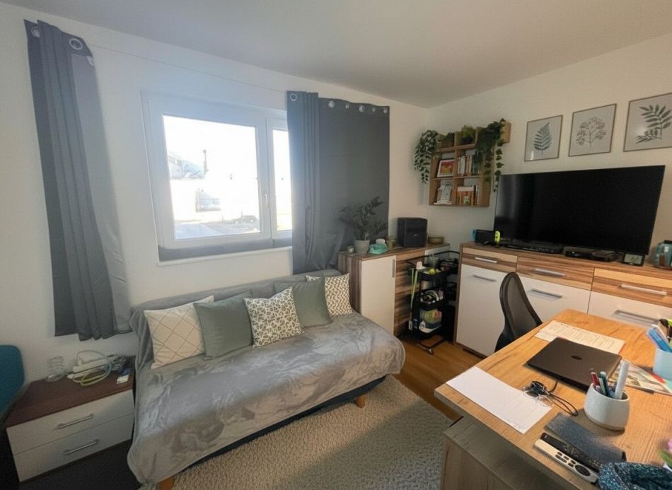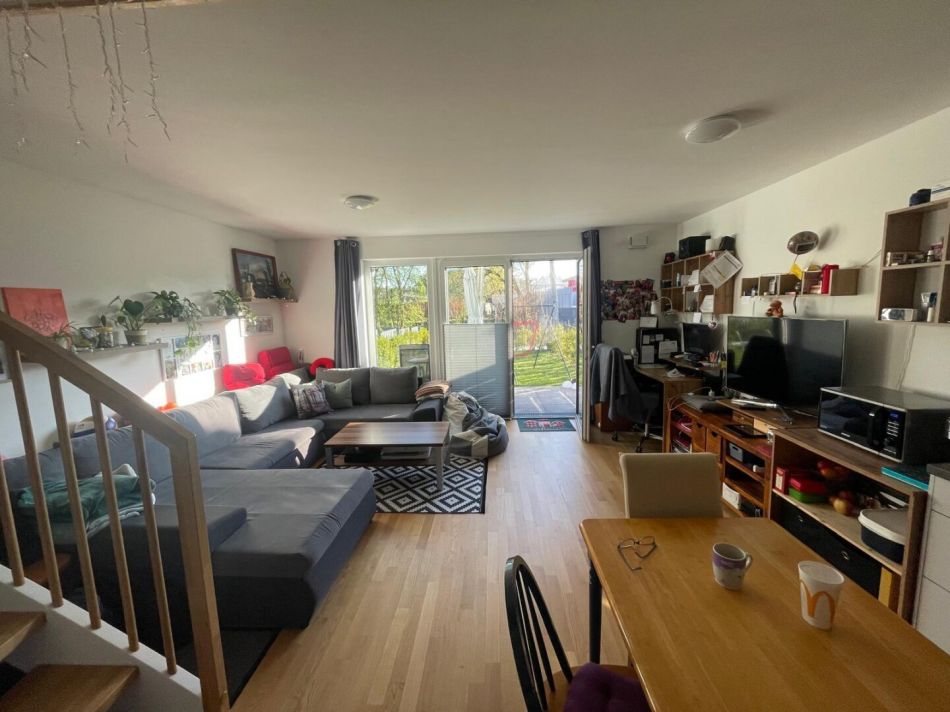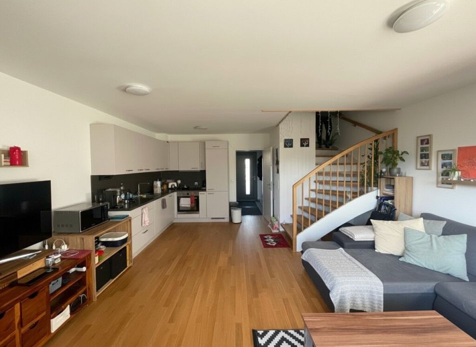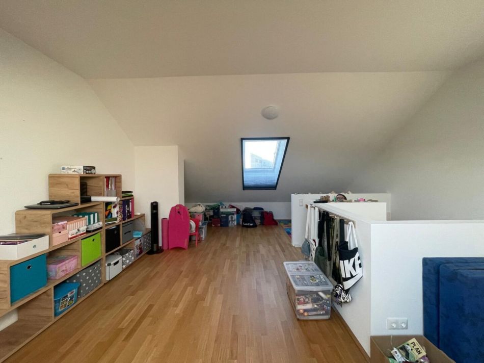 Schon beim Betreten dieses Reihenhauses wird eine unglaubliche Atmosphäre übermittelt. Das Reihenhaus mit ca. 122 m² Wohnfläche bietet ebenfalls einen ca. 70 m² großen Garten samt Terrasse. In traumhafter Lage und gepflegter Nachbarschaft genießen Sie hier die Nähe zur Natur. Im Erdgeschoss wird Sie das offene Raumkonzept mit ca. 30 m² großen Wohn–/ Ess-/ Küchenbereich begeistern. Weiters gibt es auf dieser Ebene noch einen geräumigen Vorraum, einen Abstellraum und ein WC. Im Obergeschoss befindet sich das Hauptschlafzimmer, ein Kinderzimmer und ein Badezimmer mit Badewanne und WC. Ebenfalls verfügt das Reihenhaus über ein Studio im DG welches als zusätzliche Wohnfläche genutzt werden kann. Besonders hervorzuheben ist, dass das Reihenhaus mit 2 PKW-Abstellplätzen vermietet wird und darüber hinaus sind noch 2 Besucherparkplätze vorhanden. Das Haus verfügt über eine eigene Luftwärmepumpe sowie eine Photovoltaikanlage, was die laufenden Energiekosten nachhaltig minimiert.