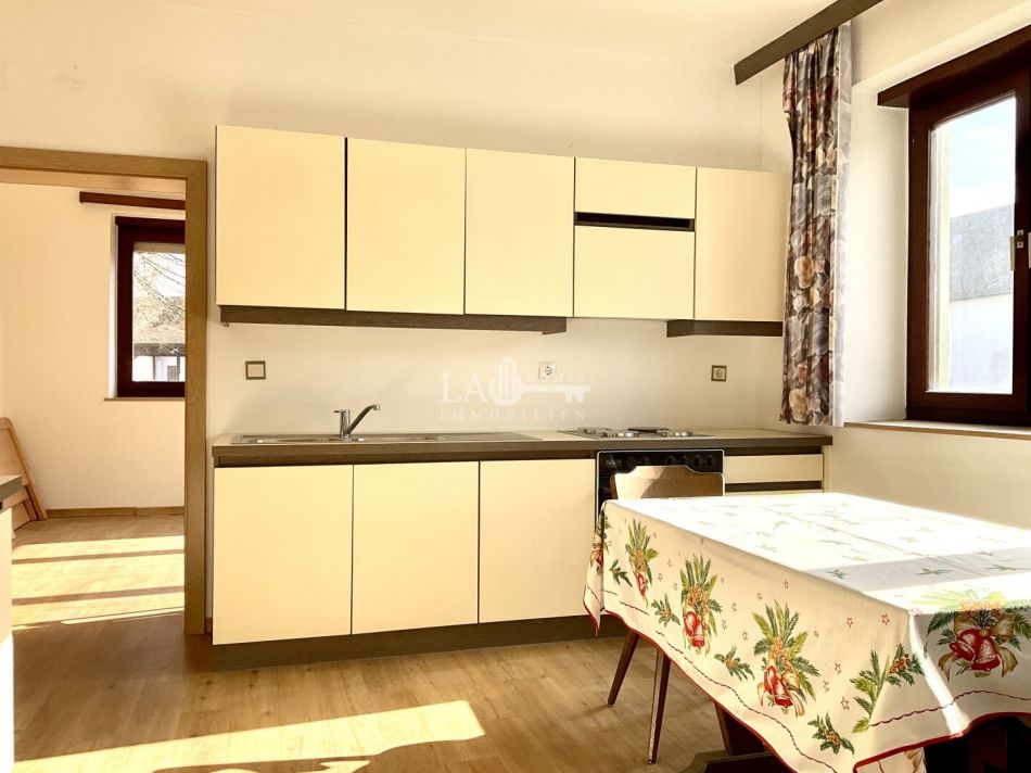 Die Wohneinheit 2 besteht aus einer Ess-Küche, Bad mit Wanne und WC (mit Tageslichtfenster) sowie zwei weiteren Zimmern.
