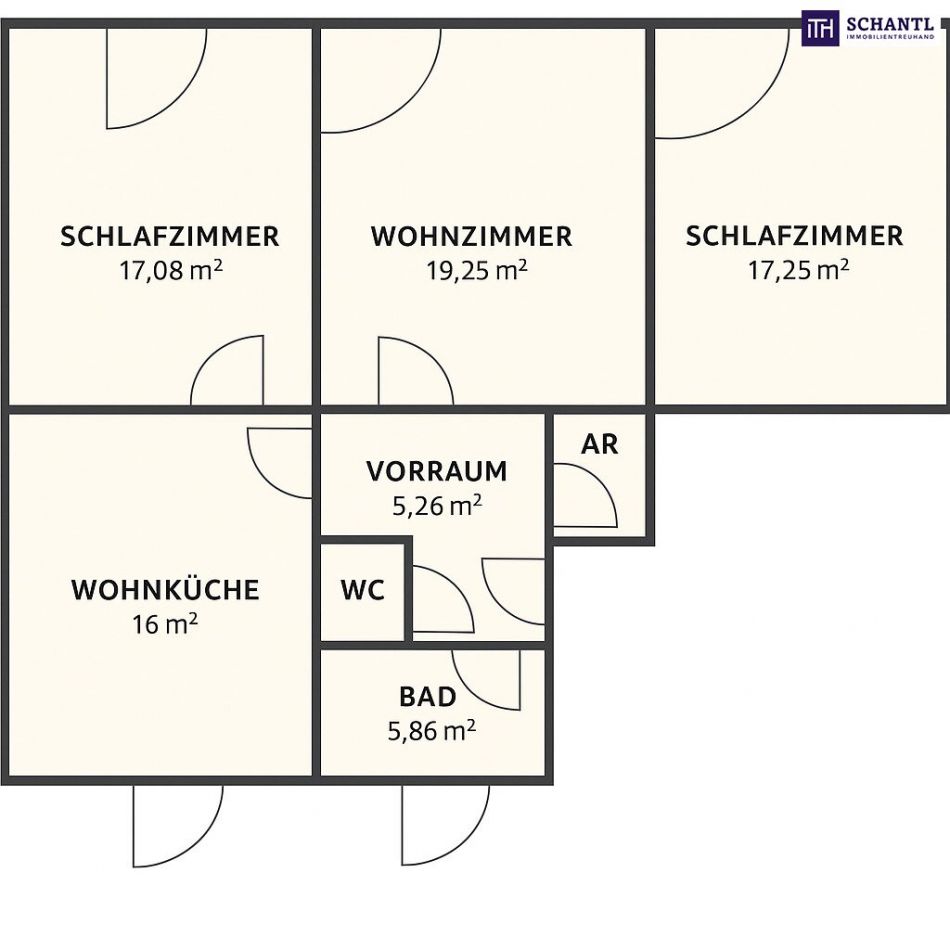 Mit einer Gesamtfläche von 84 m² bietet diese Wohnung ausreichend Platz, um Ihre individuellen Wohnträume zu verwirklichen. Die drei hellen Zimmer sind ideal gestaltet, um sowohl Rückzugsorte als auch gesellige Bereiche zu schaffen. Die offene Wohnküche ist das Herzstück der Wohnung und lädt zu gemeinsamen Kochabenden und geselligen Runden mit Freunden und Familie ein.