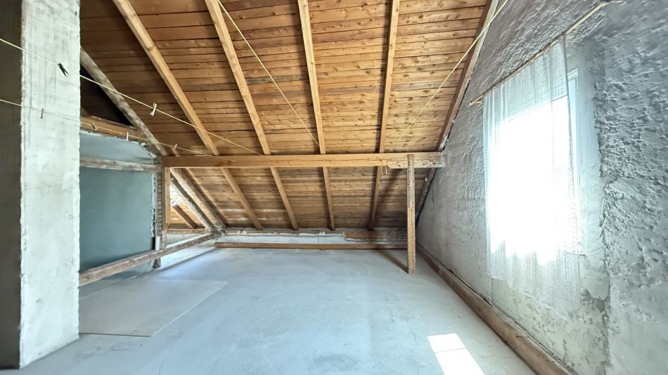 Der Dachboden hat großes Ausbaupotential auf insgesamt 200 m2 Gesamtfläche. Es handelt sich um einen Satteldach, optimal zum Ausbauen als zusätzlicher Wohnbereich mit mindestens drei großen Zimmern.