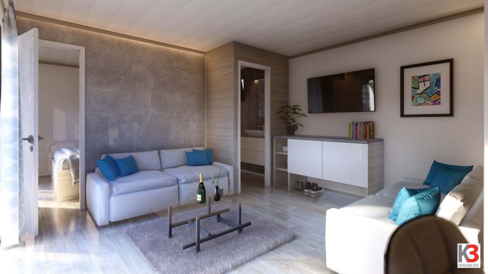 K3 - MODUL-HAUS IN GEHOBENER BAUWEISE: Wohnfläche 41 m2, 2 Zimmer, große Terrasse und Carport. Ferienregion Klopeinersee.