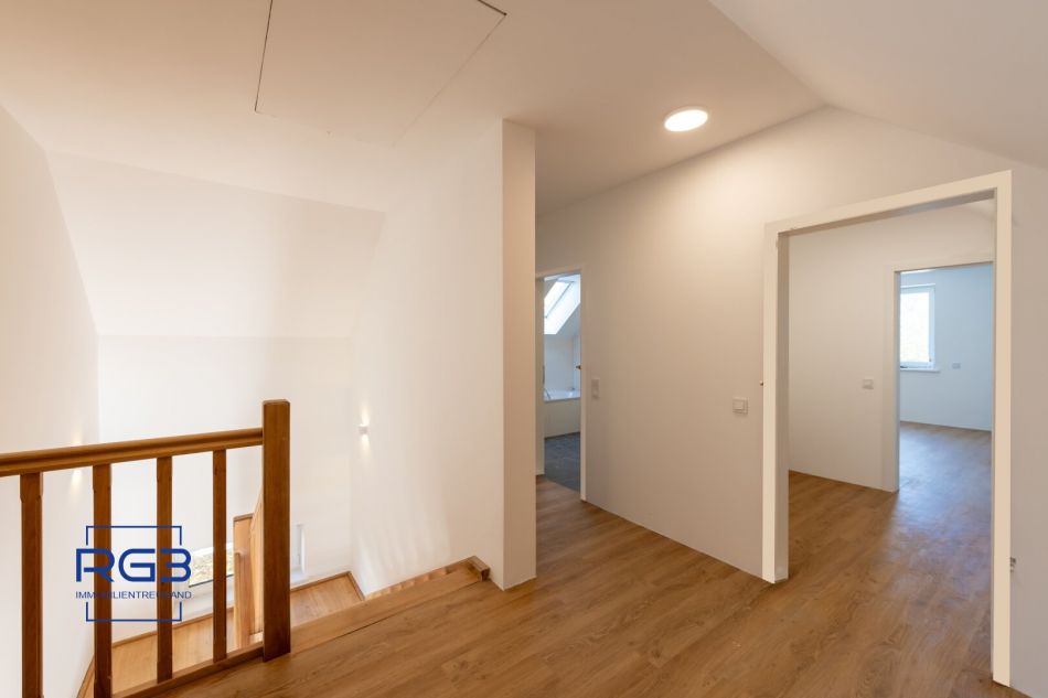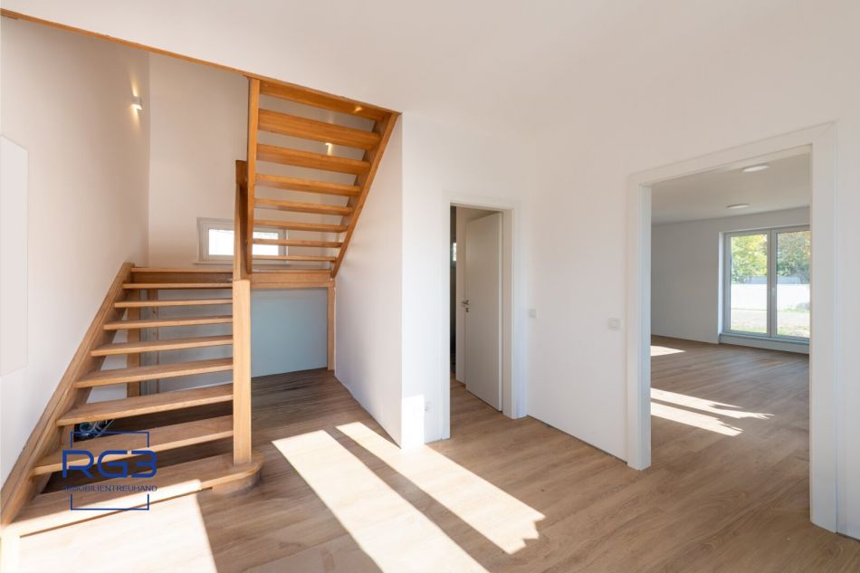 Die Räume sind zentral begehbar, hell und freundlich. Zwei Bäder, zwei Toiletten davon ein Gäste-WC und viel Stauraum machen das Haus auch alltagstauglich für Familien.