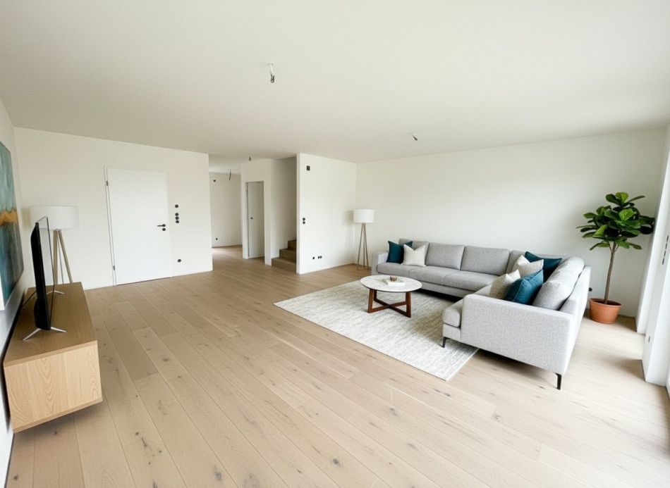 „Die dargestellten Möbel und Einrichtungsgegenstände dienen der besseren räumlichen Vorstellung und wurden mittels KI visualisiert. Sie sind nicht Bestandteil der tatsächlichen Ausstattung der Immobilie.“