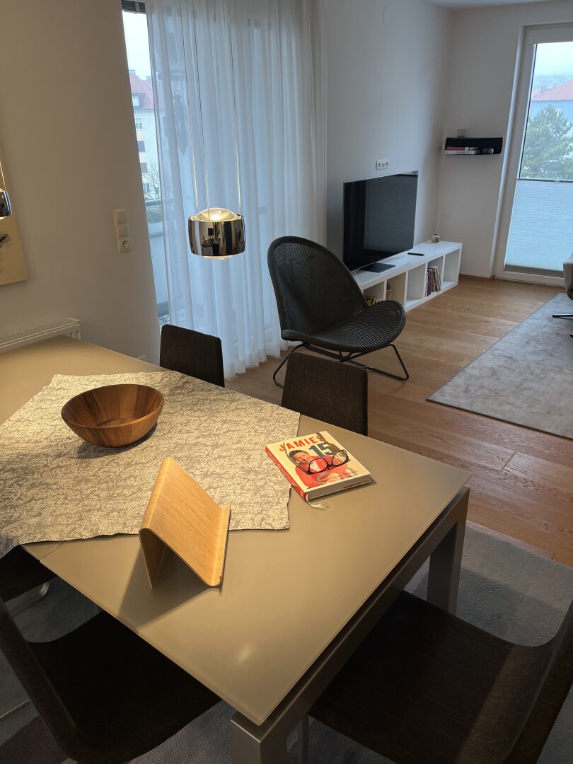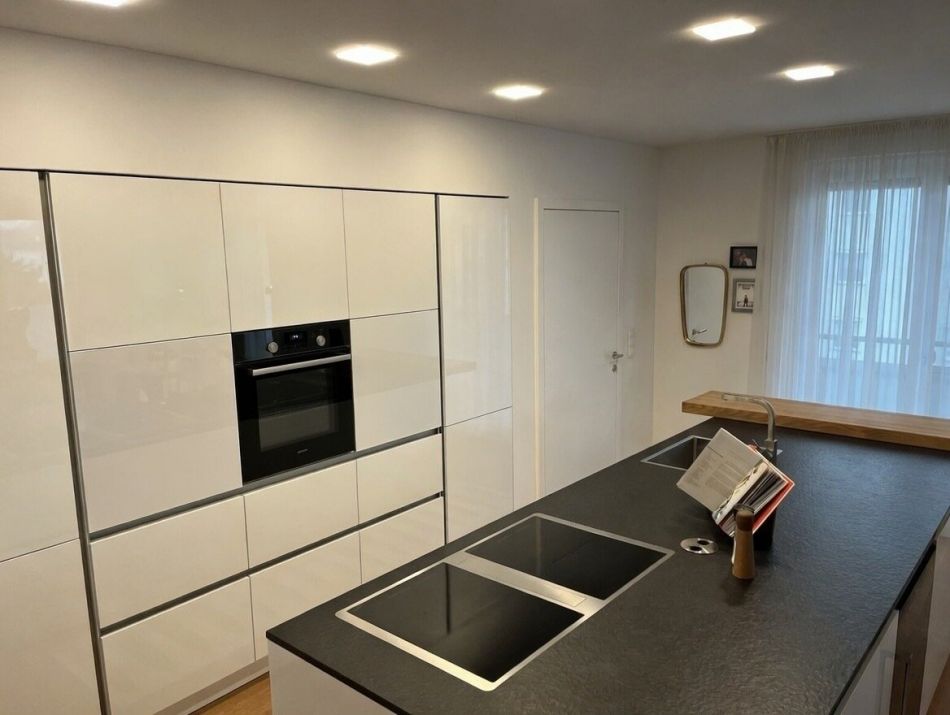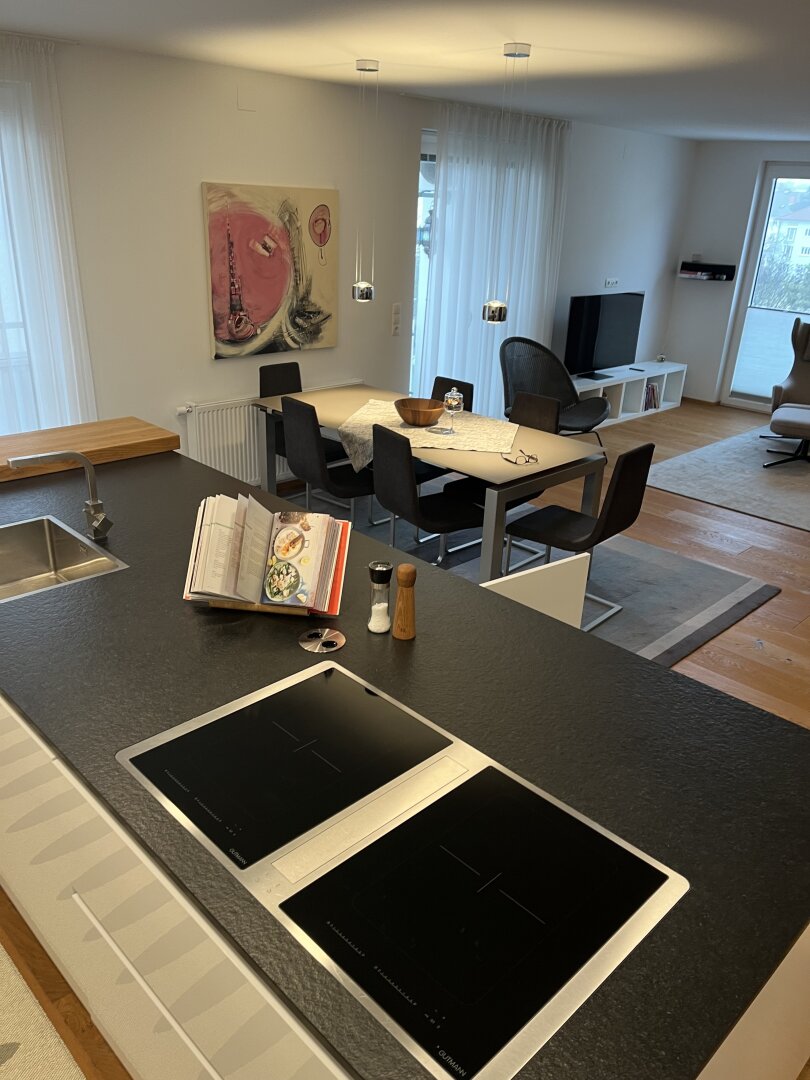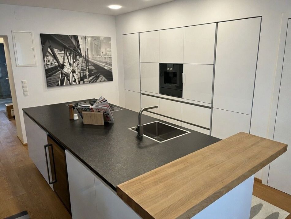Die offene Wohnküche, ausgestattet mit einer hochwertigen Einbauküche, lädt zum Kochen und Verweilen ein. Genießen Sie Ihre Mahlzeiten in der hellen Wohnküche oder auf der Loggia, während Sie den atemberaubenden Blick über die Stadt genießen. Die große Loggia ist der ideale Ort, um entspannte Stunden im Freien zu verbringen und die Seele baumeln zu lassen.
