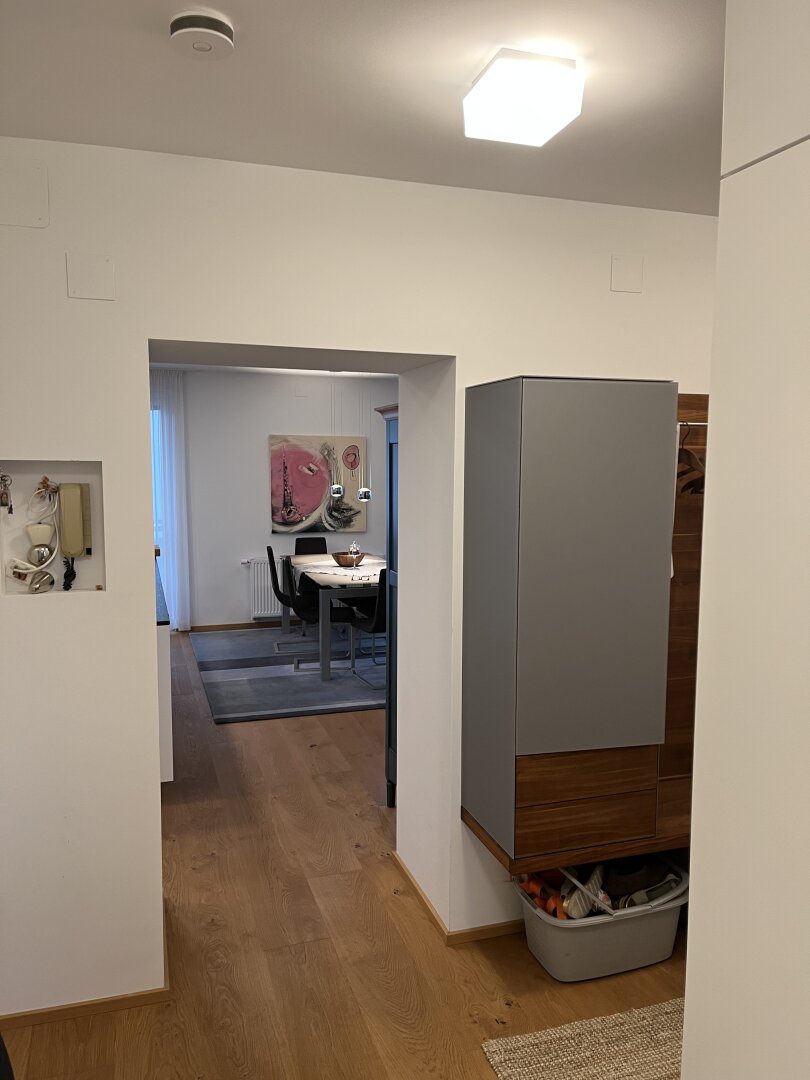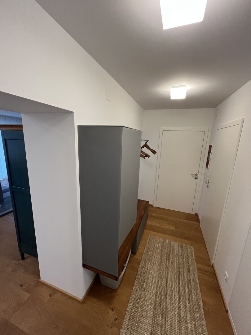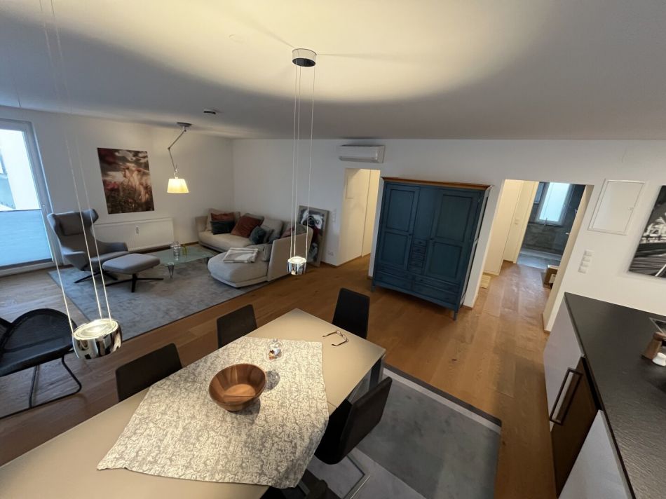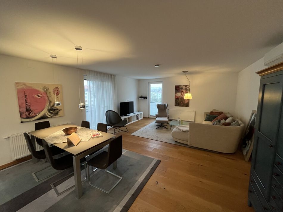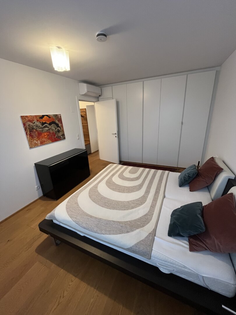 Die offene Wohnküche, ausgestattet mit einer hochwertigen Einbauküche, lädt zum Kochen und Verweilen ein. Genießen Sie Ihre Mahlzeiten in der hellen Wohnküche oder auf der Loggia, während Sie den atemberaubenden Blick über die Stadt genießen. Die große Loggia ist der ideale Ort, um entspannte Stunden im Freien zu verbringen und die Seele baumeln zu lassen.