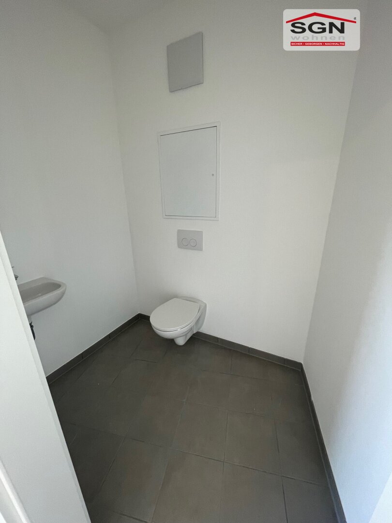 Ein weiteres separates WC mit Handwaschbecken befindet sich gleich im Eingangsbereich – ideal für Gäste. Zwei praktische Abstellräume sorgen dafür, dass alles seinen Platz findet und Ihr Wohnraum stets aufgeräumt bleibt.