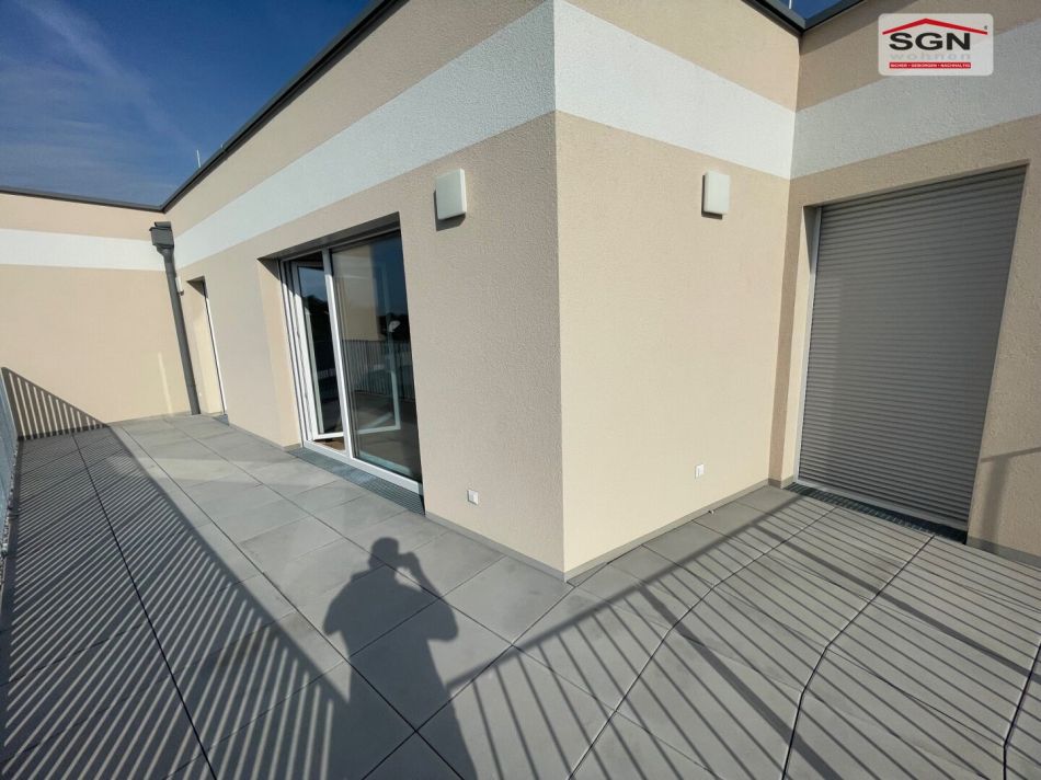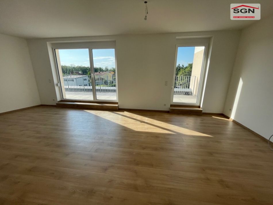 Vom zentral gelegenen Vorzimmer aus betreten Sie den Wohnküchenbereich – ein Herzstück dieser Wohnung, das seinesgleichen sucht. Hier lässt es sich wunderbar leben, genießen und Ihre Familie verwöhnen. Direkt angrenzend eröffnet sich die großzügige Terrasse mit rund 22 m² – ein herrlicher Ort zum Entspannen, Sonne tanken und gesellige Stunden im Freien verbringen.