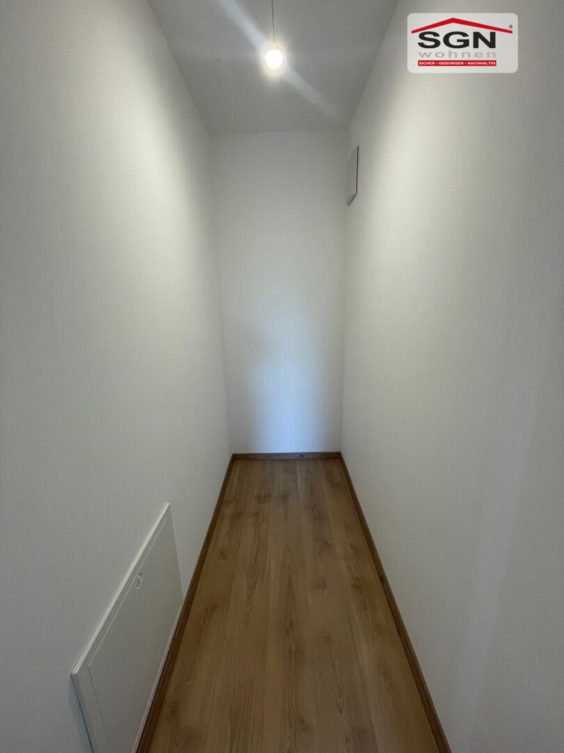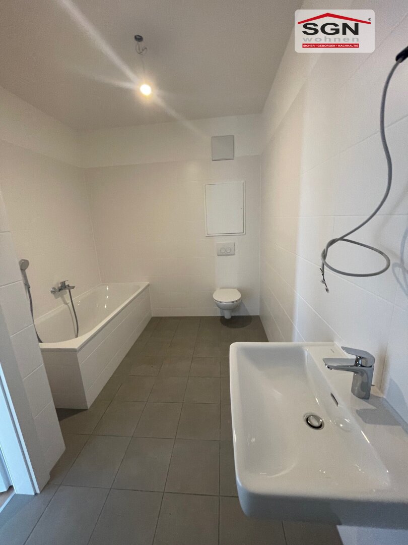 Das Badezimmer ist modern ausgestattet mit Badewanne, Waschbecken, WC und Waschmaschinenanschluss. Für zusätzlichen Stauraum sorgt ein praktischer Abstellraum – so bleibt das Zuhause stets aufgeräumt und organisiert.