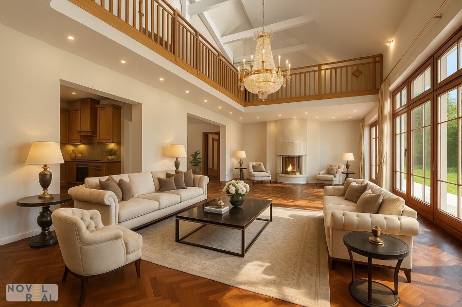 Zudem bieten zwei großzügige Garagen komfortabel Platz für bis zu acht Fahrzeuge – ein weiterer Ausdruck durchdachter Wohnqualität.
