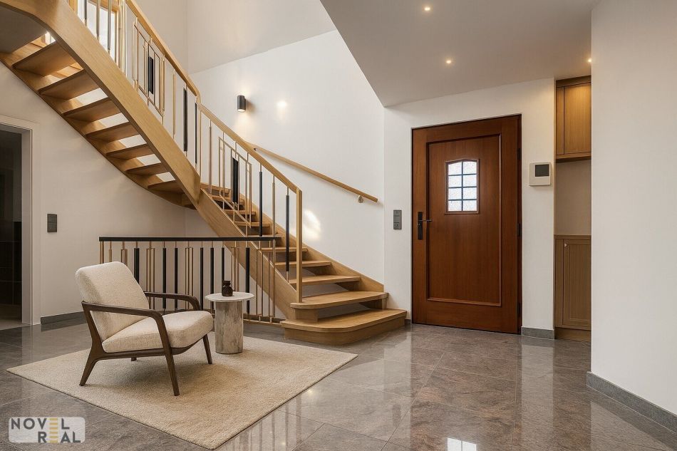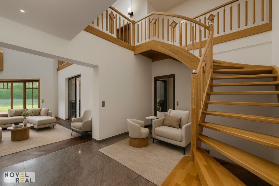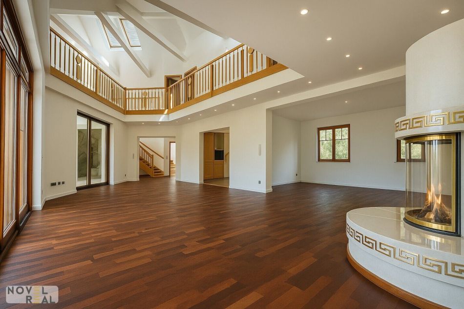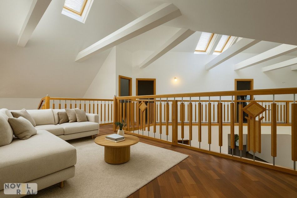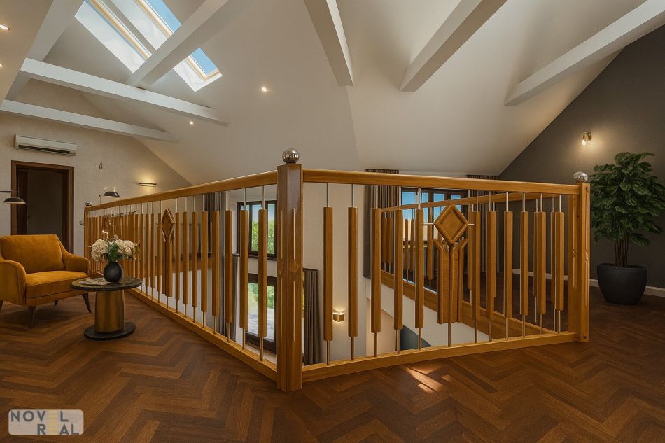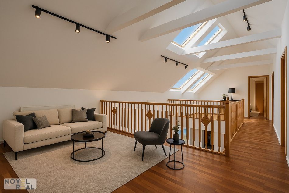 Architektonische Großzügigkeit auf allen Ebenen - Eine offene Galerie verbindet die Etagen auf elegante Weise und schafft ein beeindruckendes Raumgefühl. Sie verleiht dem Interieur luftige Weite und unterstreicht den offenen, modernen Wohnstil. Die harmonische Verbindung der Geschosse sorgt nicht nur für natürliche Lichtdurchflutung, sondern lässt das gesamte Raumkonzept großzügiger und fließender wirken.