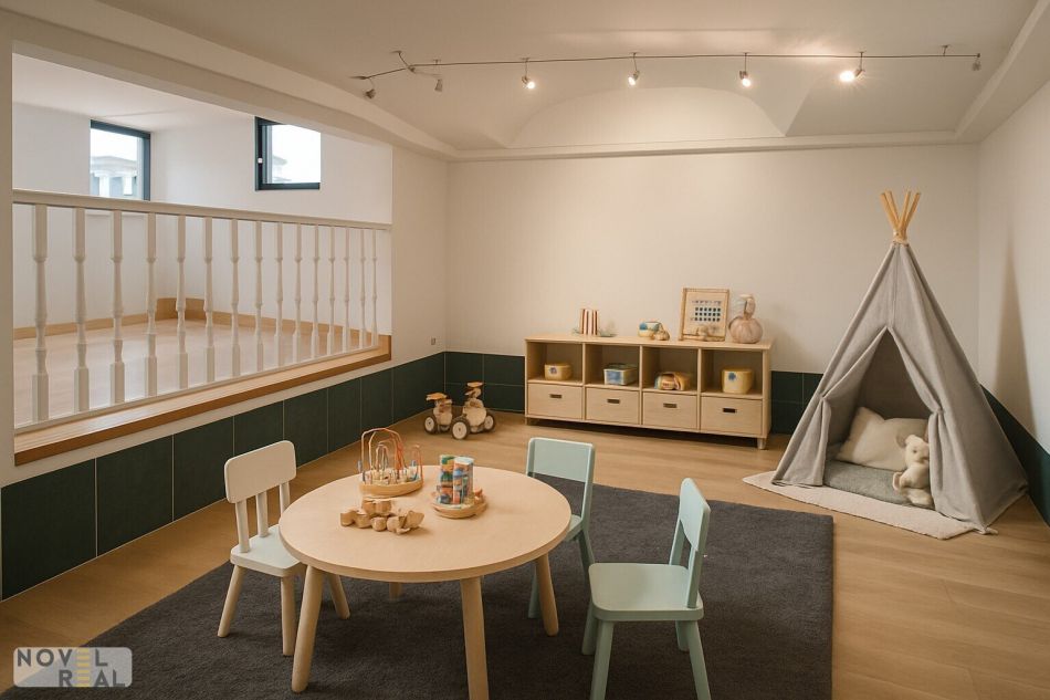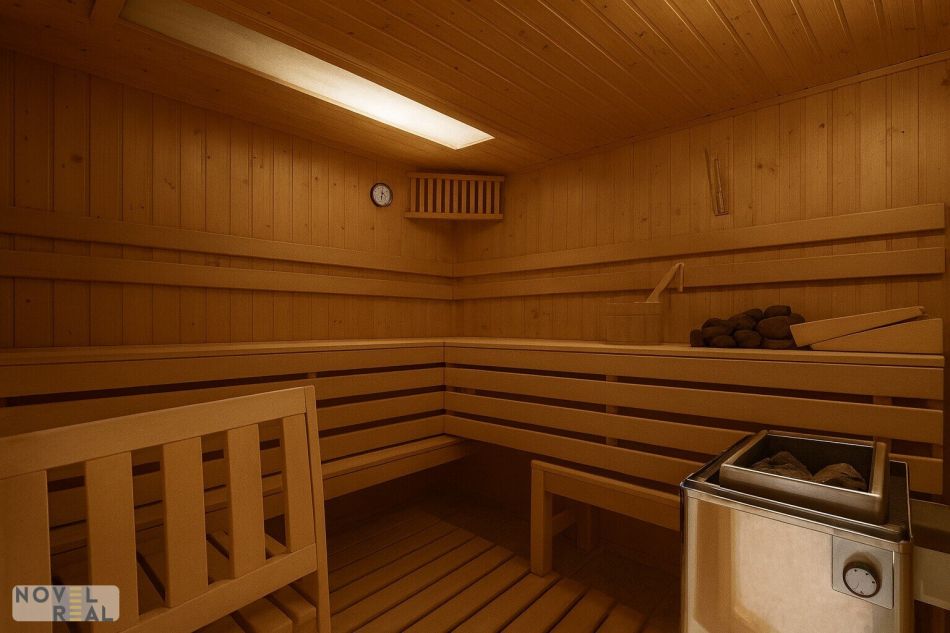 Im ausgebauten Untergeschoss befindet sich ein vielseitig nutzbarer Raum, ideal als Gästebereich mit Sauna – perfekt für anspruchsvolle Besucher oder als Rückzugsort mit Privatsphäre.