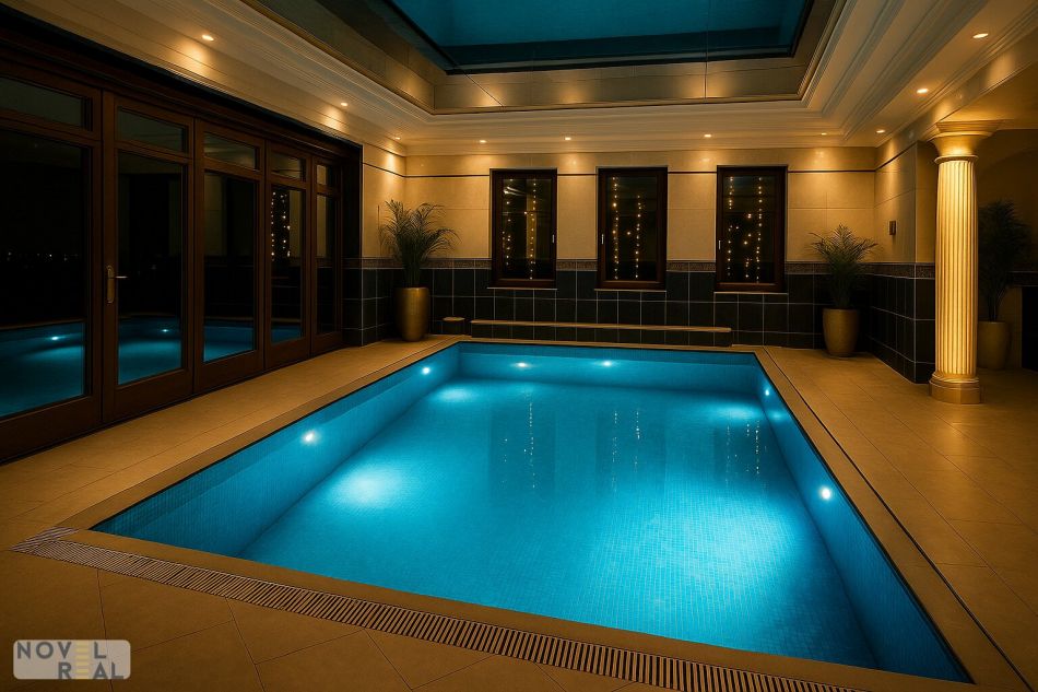 Der exklusive Wellnessbereich mit dem großzügig angelegten Pool erinnert an die luxuriöse Atmosphäre eines Fünf-Sterne-Resorts – ein Rückzugsort der Extraklasse direkt im eigenen Zuhause!