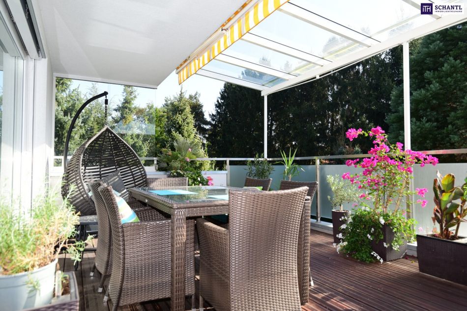 ein Highlight der Wohnung ist die großzügige Terrasse, mit ungefähr 25 m² sie bietet genug Platz für gemütliche Abende im Freien, BBQs mit Freunden oder entspannte Stunden mit Blick ins Grüne, der ungestörte, idyllische Ausblick auf die umliegende Natur ist eine wahre Oase der Ruhe