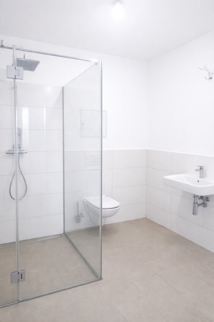 - Badezimmer mit verglaster Dusche
