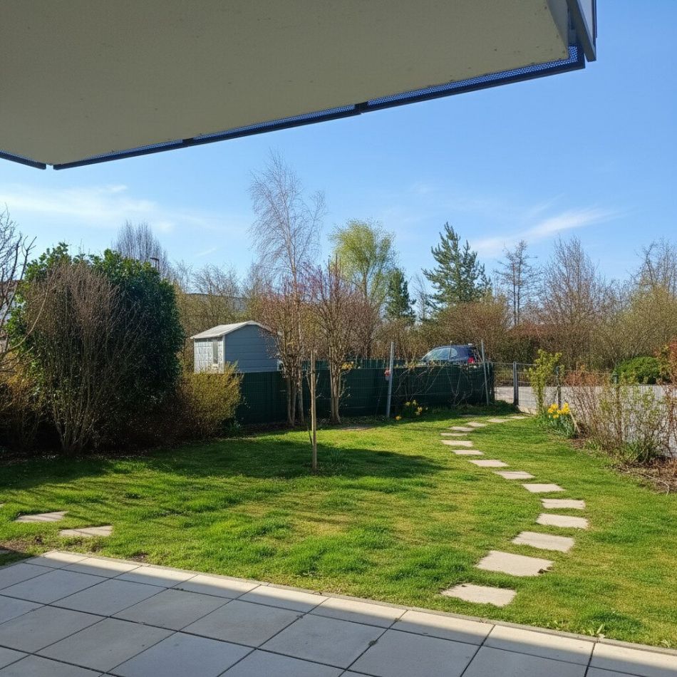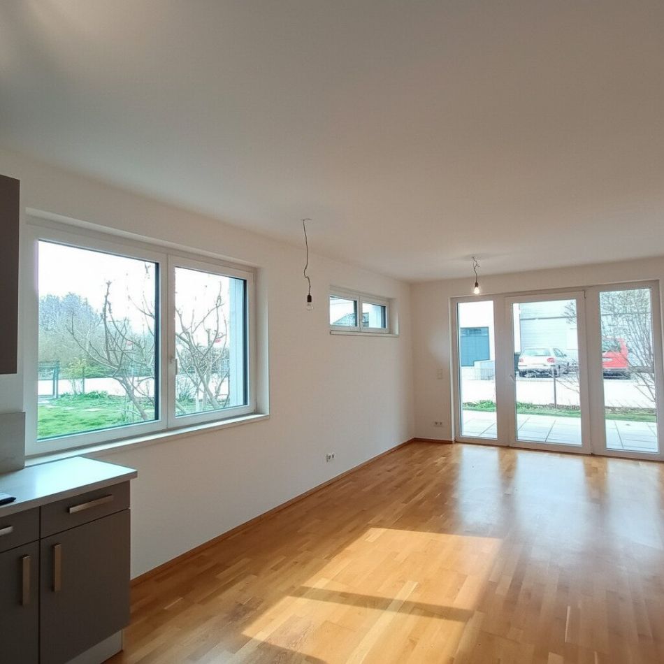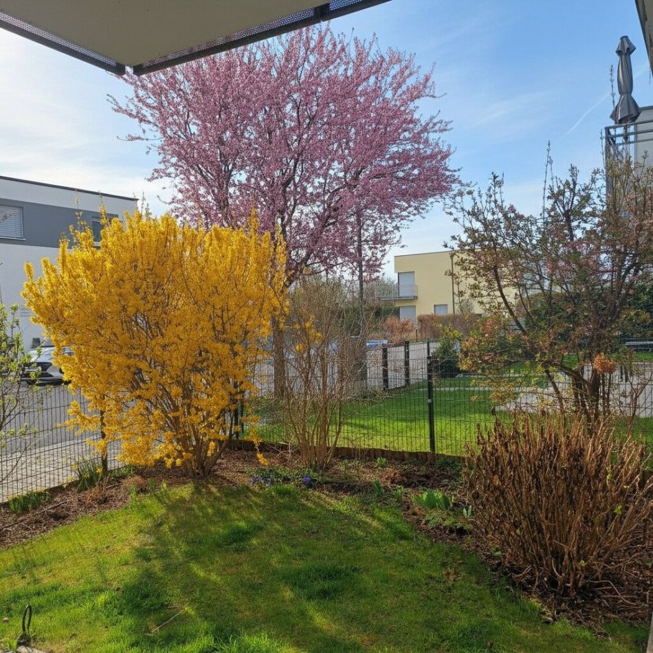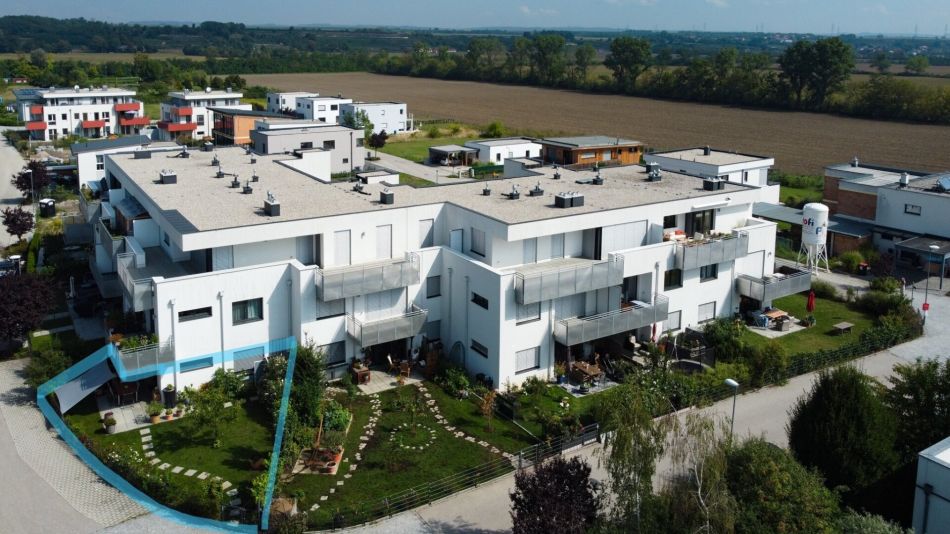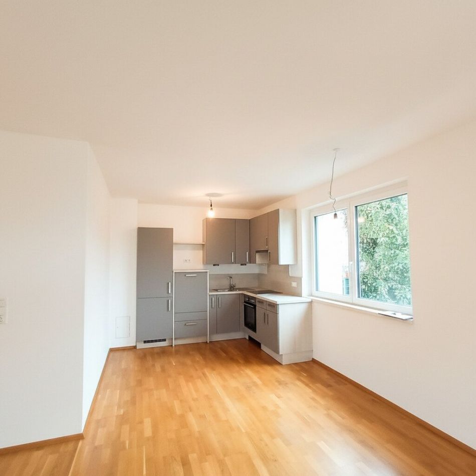 Die schöne 2-Zimmerwohnung im Erdgeschoss betritt man durch den gepflegten Eingangsbereich, welcher ausreichend Platz für eine Garderobe sowie den zentralen Zugang zu allen Räumlichkeiten der Wohnung bietet. Unmittelbar rechts vom Eingangsbereich befindet sich das Badezimmer mit großer, verglaster Dusche und WC. Beide Nassräume sind durchgehend mit modernen Fliesen ausgestattet. Ein Abstellraum schafft Stauraum für nützliche Alltagsgegenstände. Das Schlafzimmer bietet genügend Platz für ein großes Bett und einen Wandschrank.. Der Wohn- Essbereich ist mit einer Einbauküche sowie modernen Gerätschaften ausgestattet. Durch dieses gelangt man nach draußen auf die Terrasse und in den Garten. Die großen Fenster sorgen für viel Licht im Wohnraum, der helle Parkett lässt den Raum offen und freundlich wirken. Die sonnige, idyllische Terrasse gewährt mitsamt einer Gartenfläche von 178,41m² Ruhe und Erholung und hat eine angenehme Größe für einen geselligen Abend mit Freunden und Familie. Eine Fußbodenheizung sorgt auch an kalten Winterabenden für warme Füße.