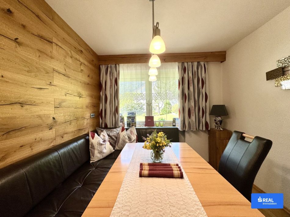 Ihr Rückzugsort in den Hohen Tauern. Inmitten der beeindruckenden Naturkulisse des Mölltals liegt diese charmante Doppelhaushälfte in Flattach – ein echtes Zuhause mit Charakter, das vielfältige Möglichkeiten eröffnet. Auf rund 175 m² Nutzfläche und einem großzügigen Grundstück bietet das Haus zwei vollständig ausgestattete Wohnungen, ideal für Familien, Mehrgenerationenwohnen oder als Feriendomizil.Mit viel Liebe zum Detail gepflegt und vollständig möbliert, verbindet diese Immobilie traditionellen Charme mit praktischem Komfort. Sonnenverwöhnte Balkone, eine große Westterrasse und ein idyllischer Garten mit eigenem Brunnen schaffen Rückzugsorte für ruhige Stunden im Grünen.