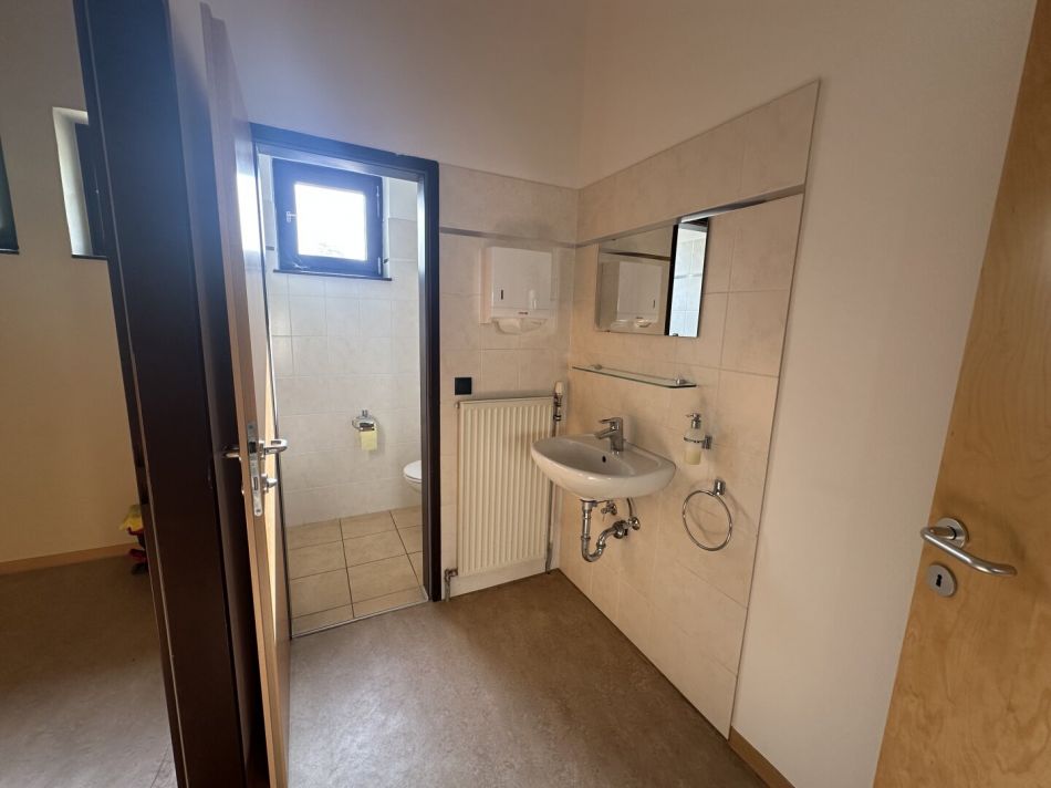 Der große, helle Hauptraum schafft eine angenehme Arbeits- bzw. Verkaufsatmosphäre und lässt sich flexibel gestalten. Eine vorhandene Einbauküche sorgt für zusätzlichen Komfort im Arbeitsalltag. Ein WC ist ebenfalls vorhanden.