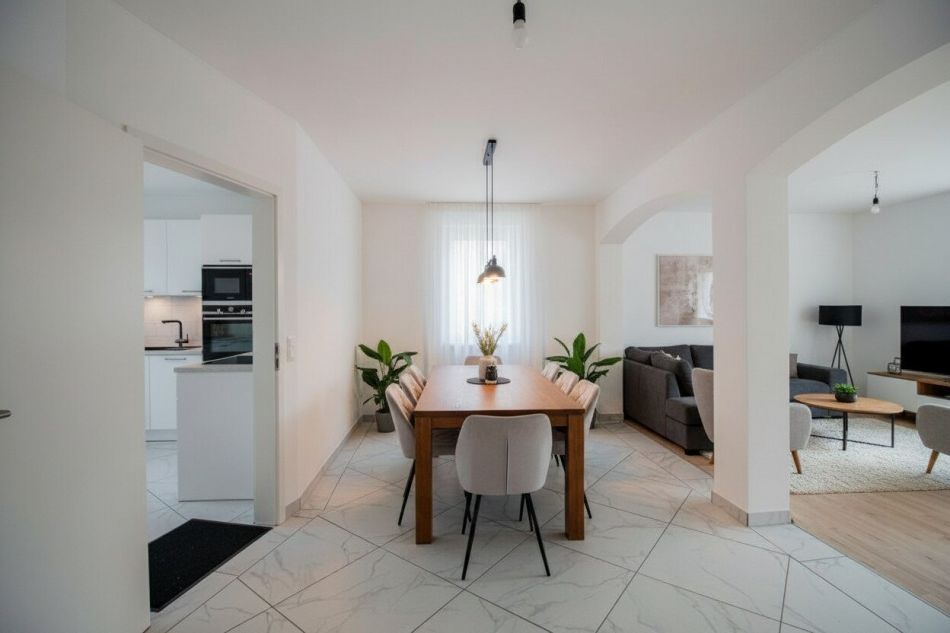 Die offene Wohnküche lädt zu geselligen Abenden mit Freunden und Familie ein. Hier können Sie kulinarische Köstlichkeiten zaubern und gleichzeitig das gesellige Miteinander genießen. Die beiden modernen Badezimmer sind mit Fenstern ausgestattet und bieten Ihnen sowohl eine Badewanne als auch die Möglichkeit, sich in Ruhe zurückzuziehen.