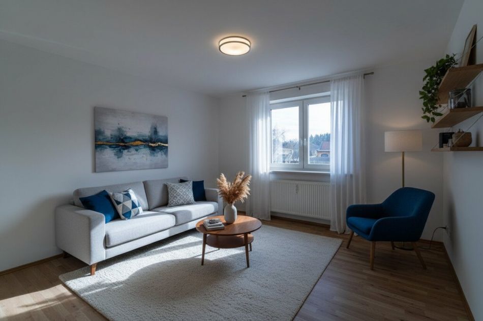 „Die dargestellten Möbel und Einrichtungsgegenstände dienen der besseren räumlichen Vorstellung und wurden mittels KI visualisiert. Sie sind nicht Bestandteil der tatsächlichen Ausstattung der Immobilie.“