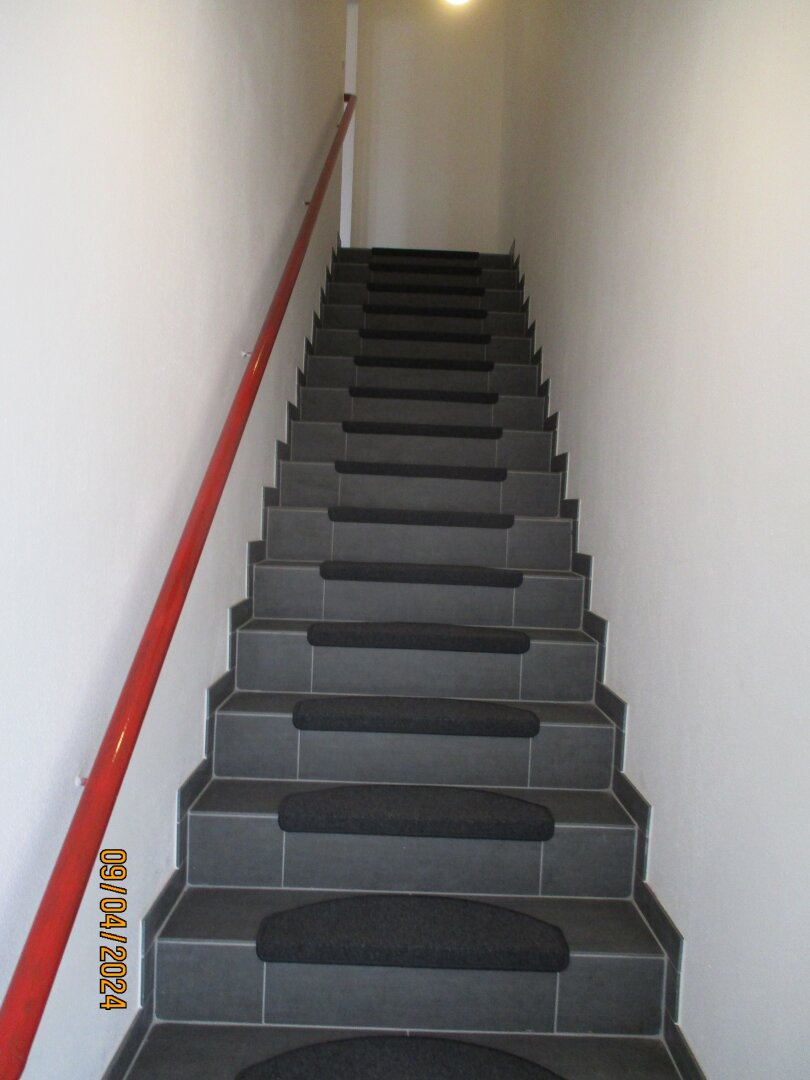 Ins Obergeschoss gelangt man über einen Stiegenaufgang. Im Obergeschoss befindet sich neben dem Hauptraum (ca. 37,55 m²) ein Vorraum (ca. 1,52 m²), und ein Badezimmer (ca. 5,39 m²). Im Badezimmer ist ein Waschbecken, eine Dusche, ein WC und ein Waschmaschinenanschluss montiert. Im Hauptraum des Obergeschosses sind Küchenanschlüsse verlegt.