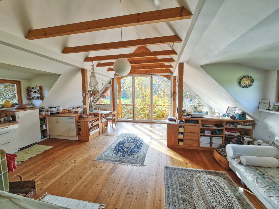 Das schöne Wohnhaus wurde immer wieder saniert und erneuert und befindet sich in sehr gepflegten Zustand. So wurde um 2000 das Dach saniert, eine VWS-Fassade angebracht, die Fenster getauscht, teilweise die Verfliesungen und Böden, Elektroinstallationen, Heizung (Fernwärme), etc. erneuert. Die Lage ist optimal - alle notwendigen Infrastruktureinrichtungen sind innerhalb von 1,5 km erreichbar (Lebensmittelgeschäft, Kindergarten, Volkschule, Sportanlagen, uvm.), die Bushaltestelle ca. 350 m entfernt. Nach Süden und Westen ist die Aussicht unverbaubar und hier erstrecken sich Wiesen und Felder, die andere Seite bietet einen idyllischen Blick auf die Pfarrkirche.Highlight des Hauses ist sicher der nach oben hin offene Wohn-/Eß-/Küchenbereich im Ober- bzw. Dachgeschoß mit seinen großen Fensterflächen (Falttüren lassen sich ganz öffnen) und dem Holzdielenboden. Es gibt wohl kaum jemanden, der sich hier nicht wohl fühlt! Die Gartenterrasse nach Süden hin ist zur Gänze überdacht. Ein eigener Brunnen für Brauchwasser und eine Garage mit zusätzlichem Stauraum stehen zur Verfügung. Das Haus ist teilunterkellert.