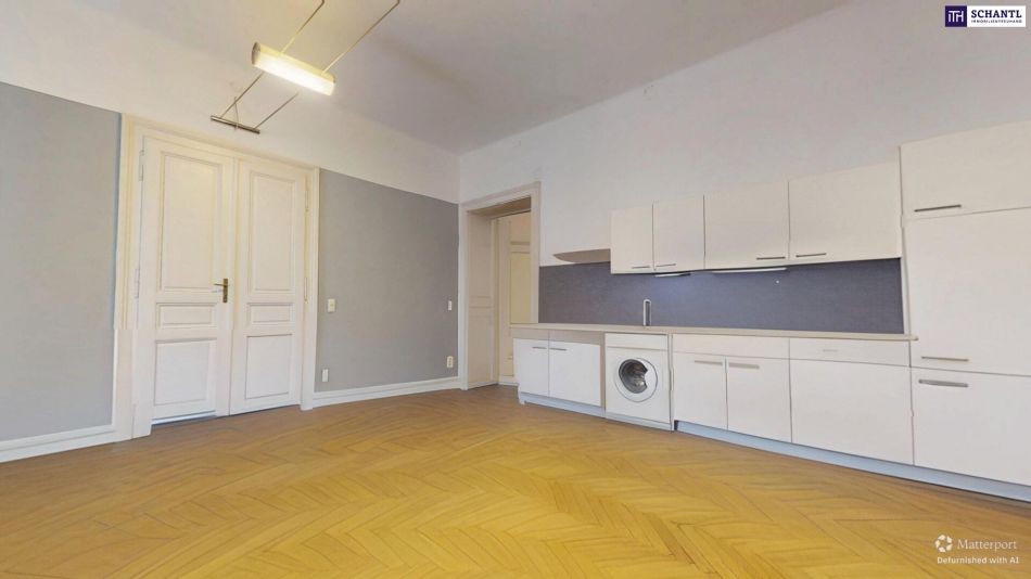 Die Möblierung wurde mittels KI aus den Bildern entfernt. Dadurch können vereinzelt Artefakte oder leicht verschwommene Bereiche an Böden und Wänden entstehen.