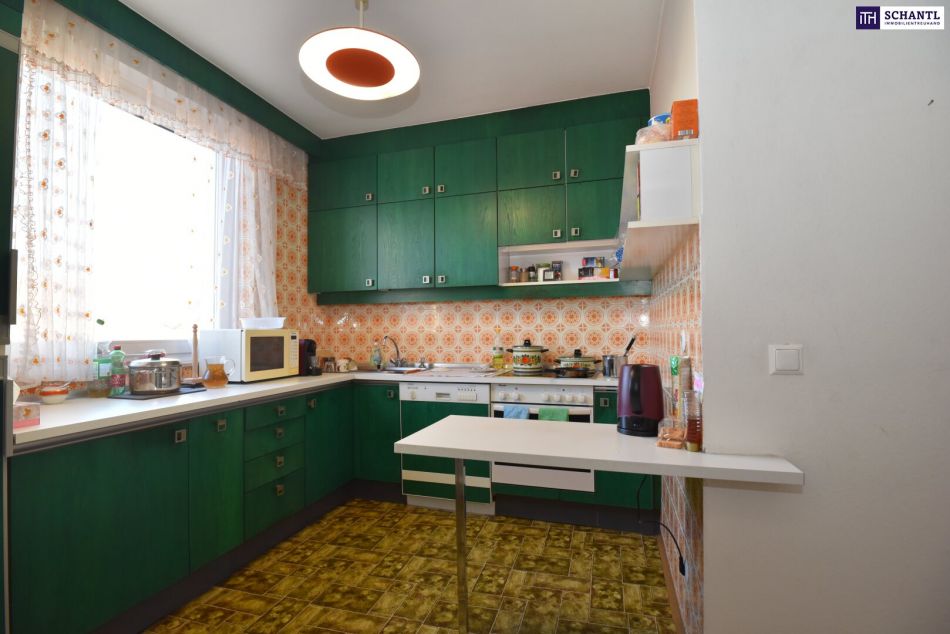 Die Küche ist separat gehalten und praktisch gestaltet – ideal für alle, die beim Kochen ungestört sein möchten. Die Wohnung verfügt über zwei Schlafzimmer sowie einen zusätzlichen Schrankraum mit maßgefertigten, fix verbauten Einbauschränken vom Tischler, die optimalen Stauraum bieten.