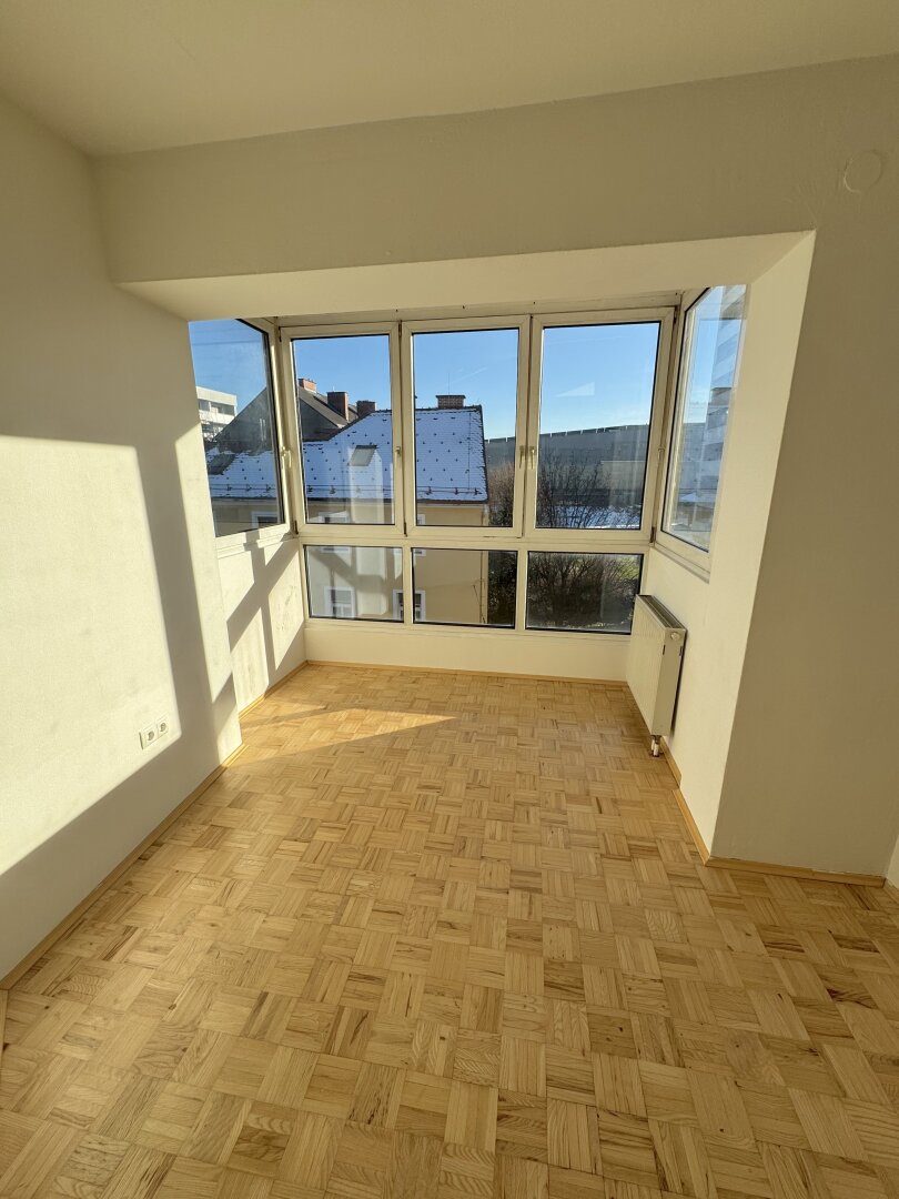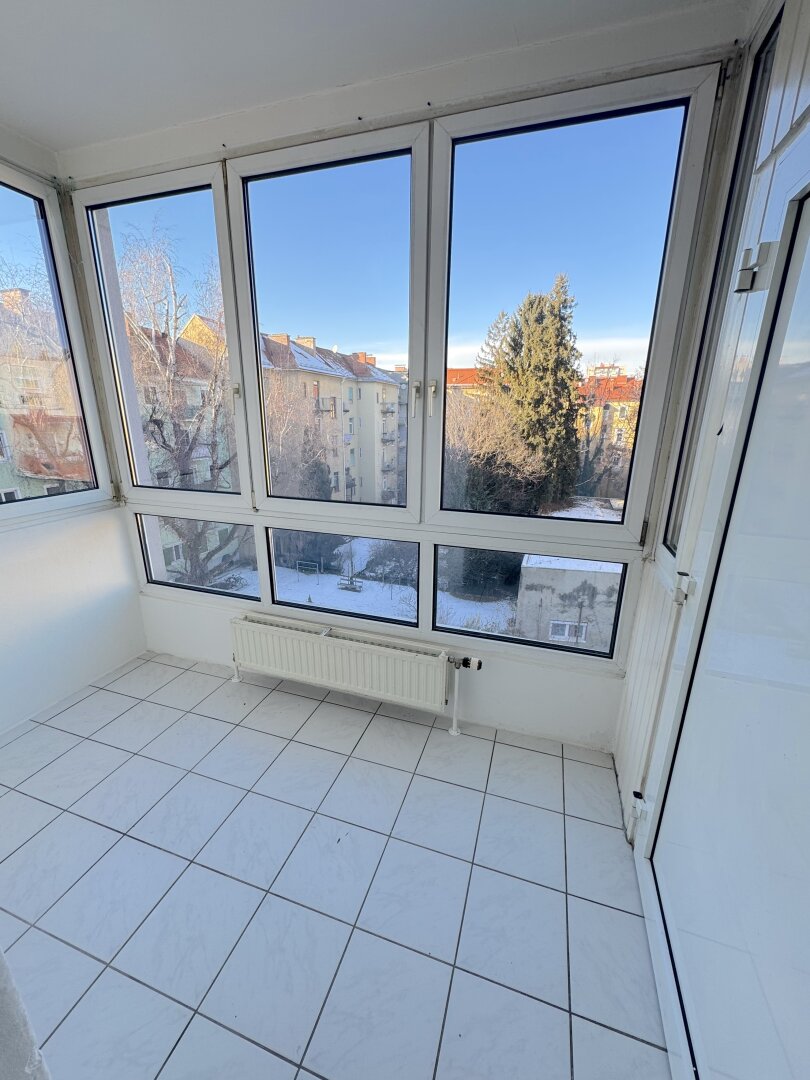 Sonnige Wohnung mit zwei Wintergärten, die zum gemütlichen Verweilen einladen. Zusätzlich kann man vor dem Eingang den Zugang als Balkon nützen mit Blick in den grünen Innenhof.Die Wohnung besteht aus einem Vorraum mit Wintergarten, einer Wohnküche mit Platz für einen Esstisch, einem Abstellraum, 2 Schlafzimmer und ein Bad mit Dusche und WC.